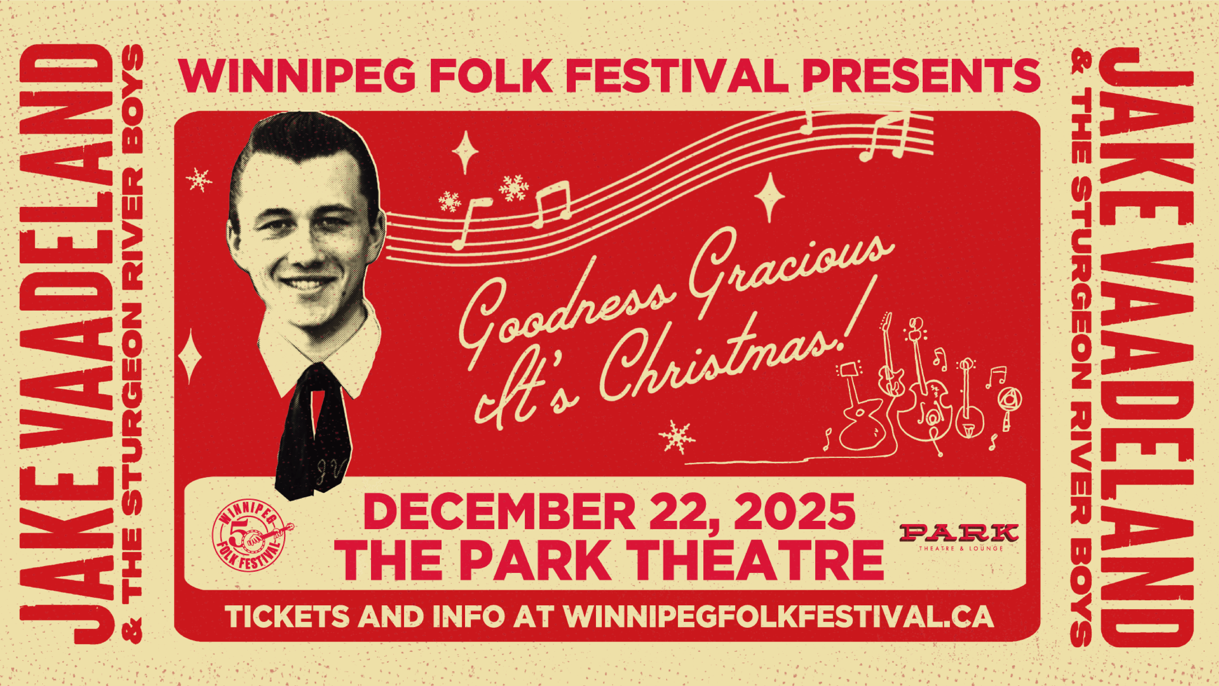 Get your tickets to see Jake Vaadeland & The Sturgeon River Boys, presented by Wpg Folk Fest in Winnipeg, Canada. Happening on Monday, December 22, 2025 at Park Theatre. Doors open at 8:00 PM.