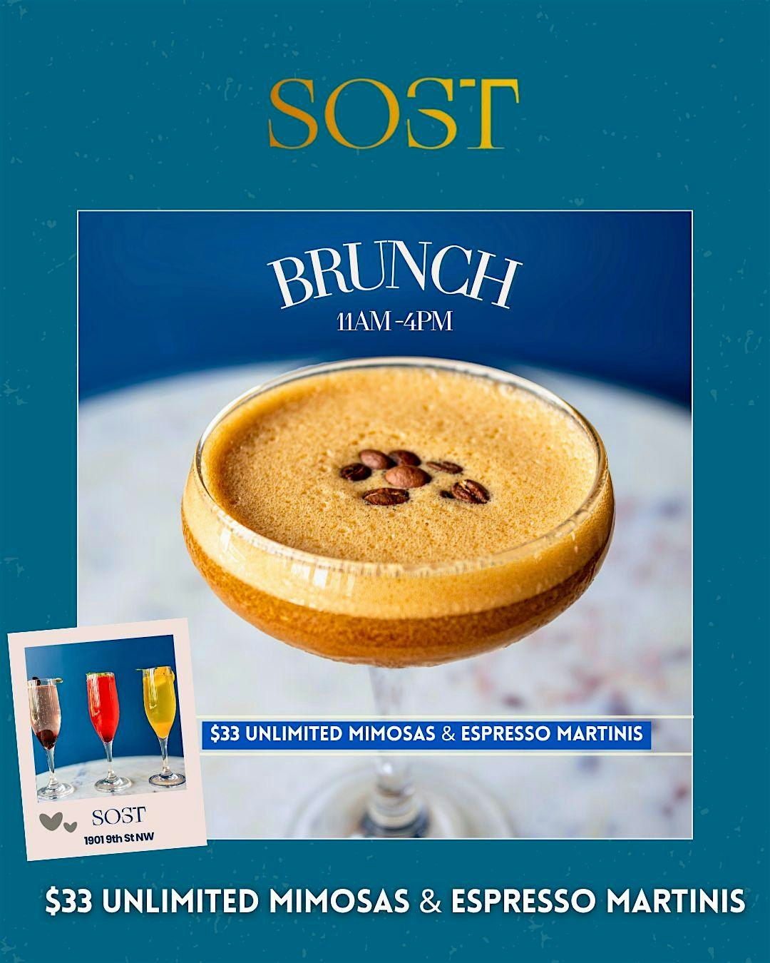 SOST Brunch | $33 Bottomless Mimosas & Espresso Martinis at SOST – Washington, DC