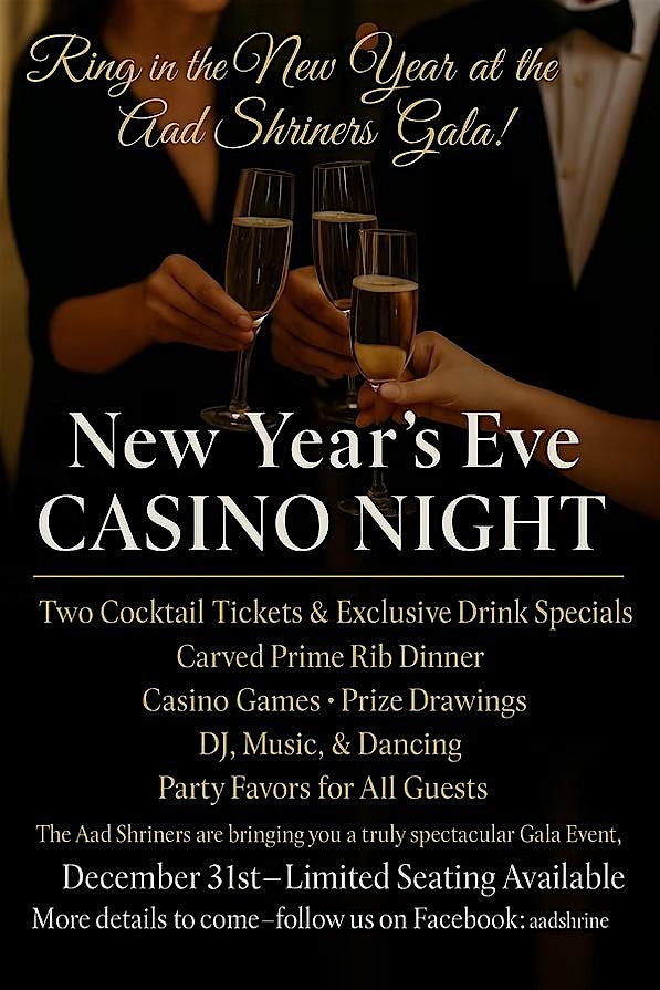 Join us for a night of fun and excitement at the AAD Shriners Gala! New Year’s Eve Casino Night – it’s going to be a blast!