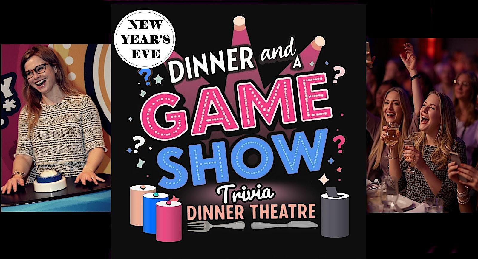 This interactive dinner theatre experience features a comedic quiz show that you play along with from you seat! The top scorers are invited on stage (should they choose to accept) to play a TV game show-style round on stage, complete with podiums and buzzers… and prizes! Enjoy a three-course meal which includes your choice of three entrees and non-alcoholic drinks. Beer, wine, and cocktails available separately. All your favorite TV game show games are here, including crossword-style word games, trivia, picture puzzles, and survey games! All with a lighthearted comedic presentation, including humorously fake “sponsors.” Everyone walks away with a door prize. A super fun activity to welcome in the new year. It’s dinner theatre like nothing you’ve ever experienced… you don’t want to miss it!