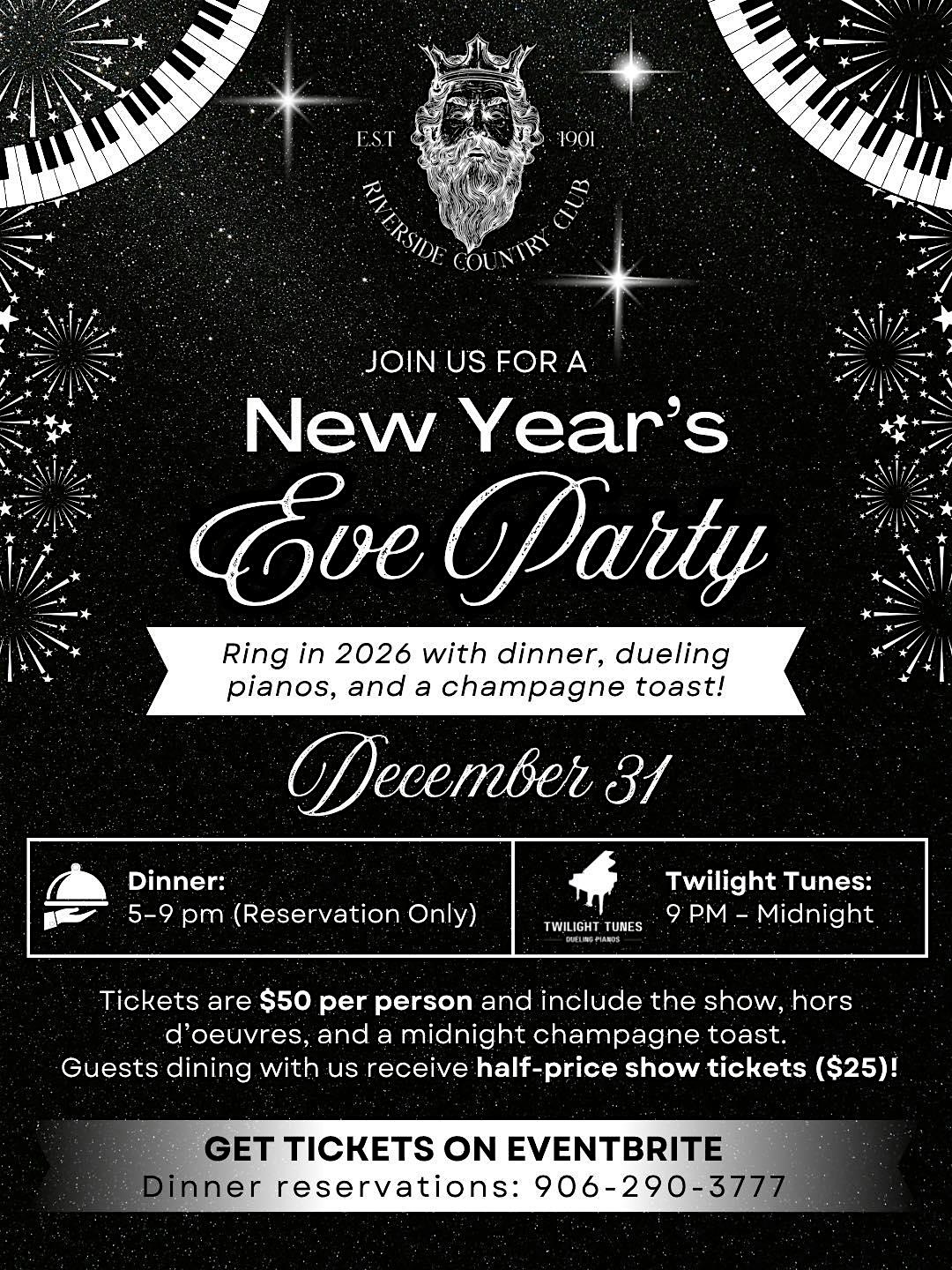 Don’t miss this upcoming event in Menominee, MI. Happening on Wednesday, December 31, 2025 at Riverside Country Club. Doors open at 9:00 PM.