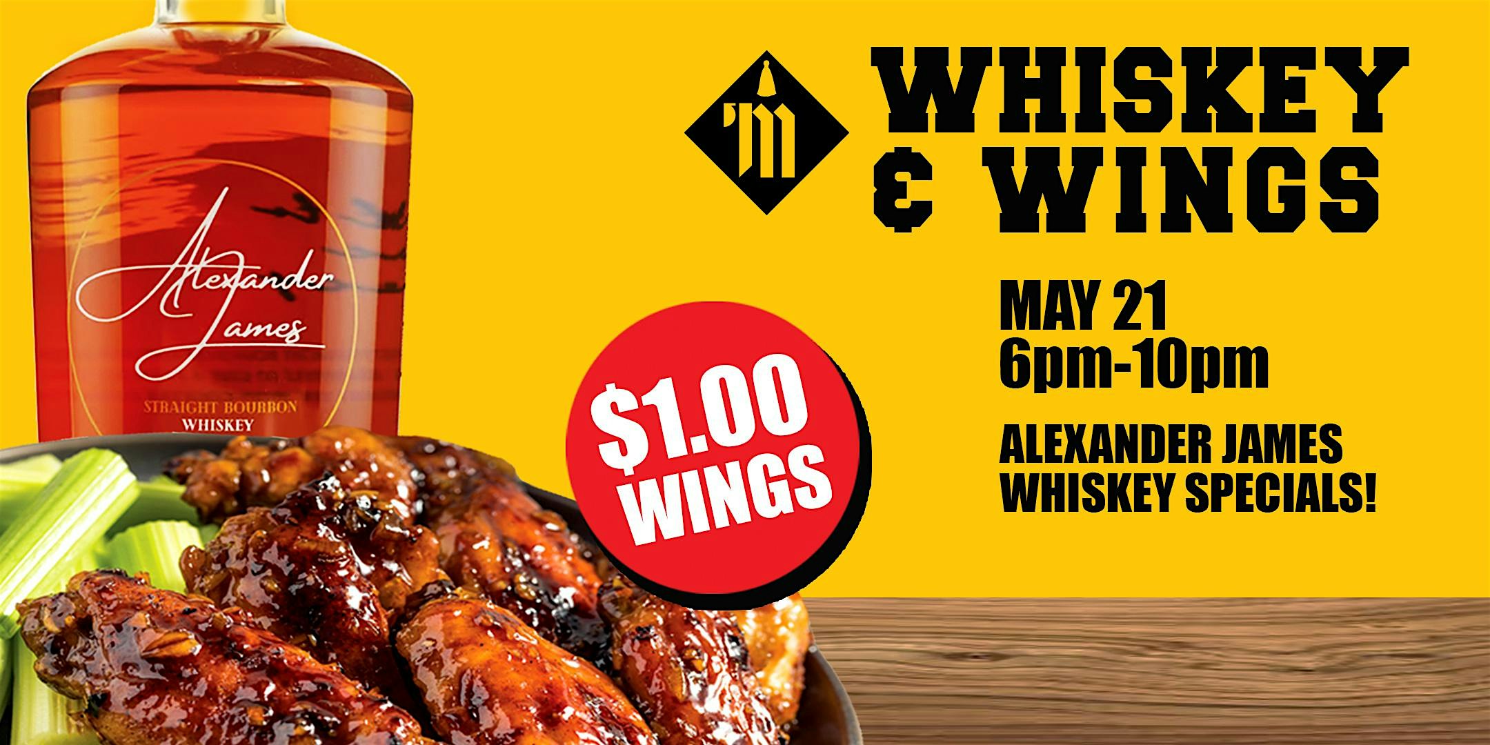 Join us at Diversey House for Whiskey & Wings, featuring the rich, smooth taste of Alexander James Straight Bourbon Whiskey and our unbeatable $1.00 Wings special.
