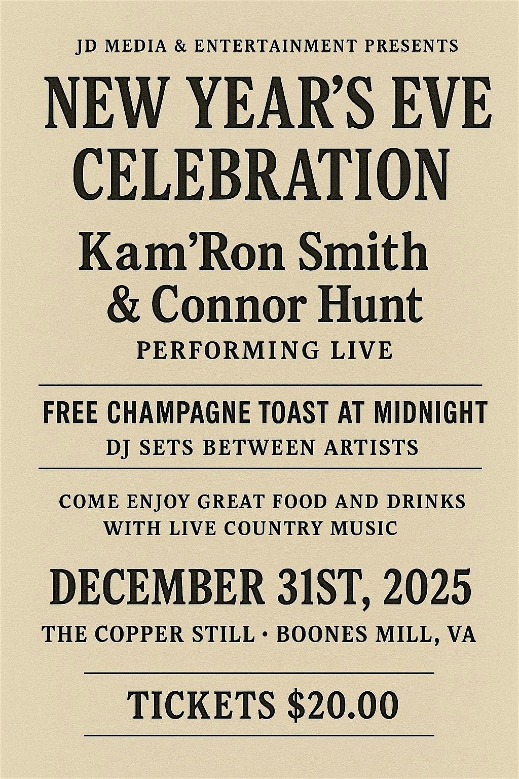 New Year’s Eve concert with Kam’Ron Smith & Connor Hunt at 25156 Virgil H Goode Hwy – Boones Mill, VA