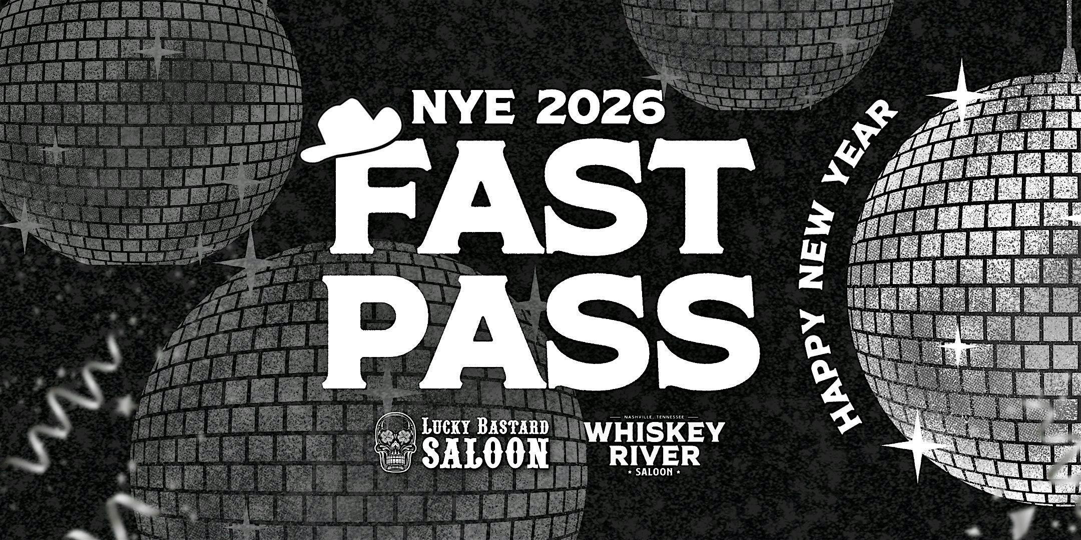 NYE Fast Pass to our sister saloons—skip the lines at Lucky Bastard Saloon & Whiskey River Saloon. One pass, quicker entry, more party!