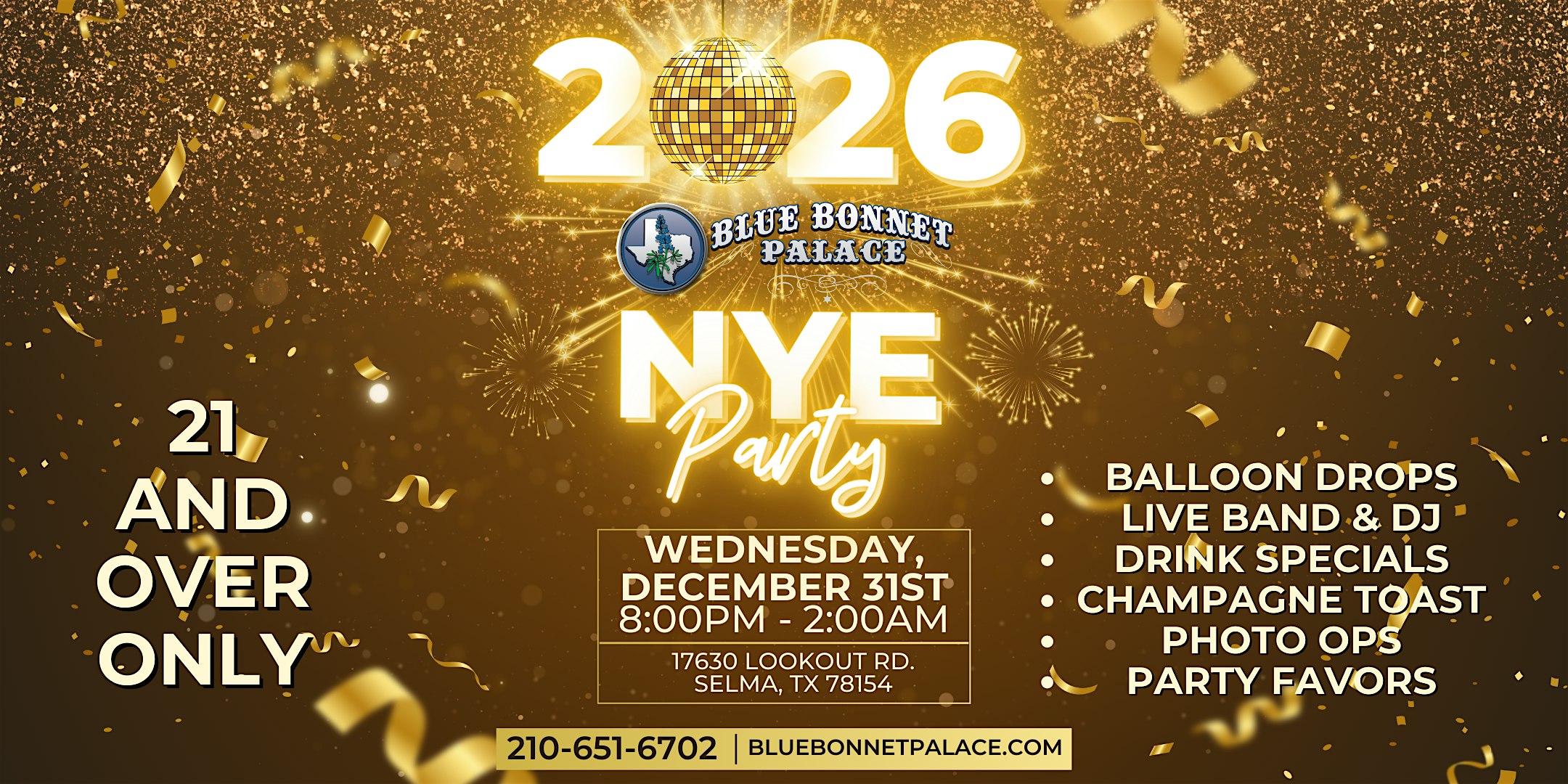 Don’t miss this upcoming event in Selma, TX. Happening on Wednesday, December 31, 2025 at Blue Bonnet Palace. Doors open at 8:00 PM.