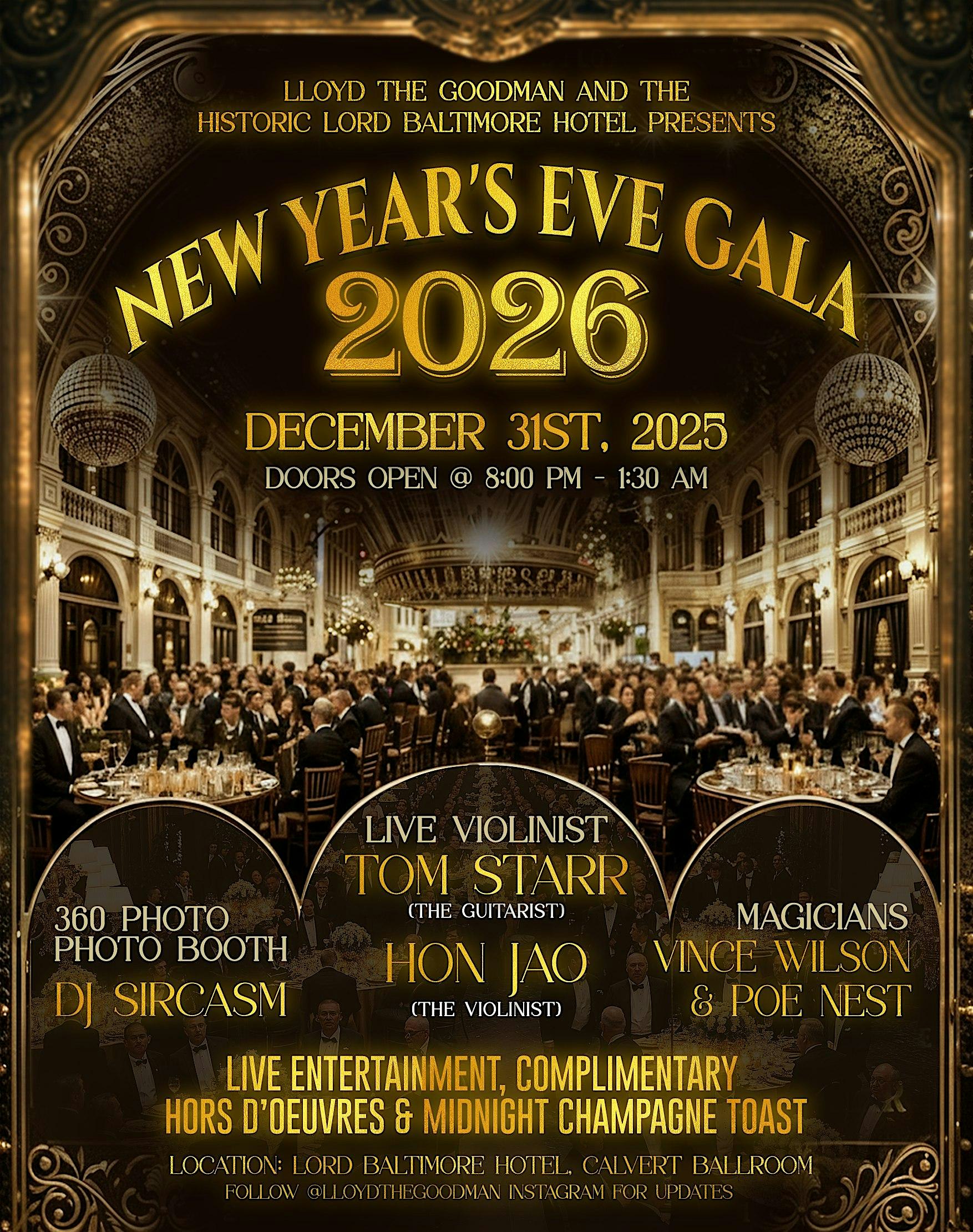Don’t miss this upcoming event in Baltimore, MD. Happening on Wednesday, December 31, 2025 at Lord Baltimore Hotel. Doors open at 8:00 PM.