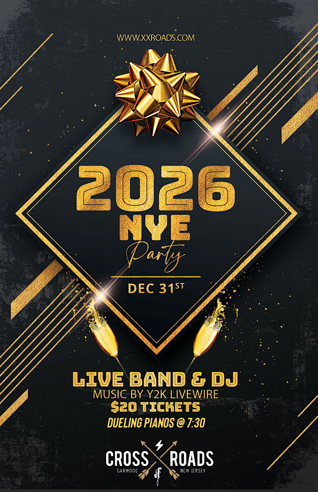 NYE w/ Y2K Livewire & Dueling Pianos at Crossroads at Crossroads – Garwood, NJ