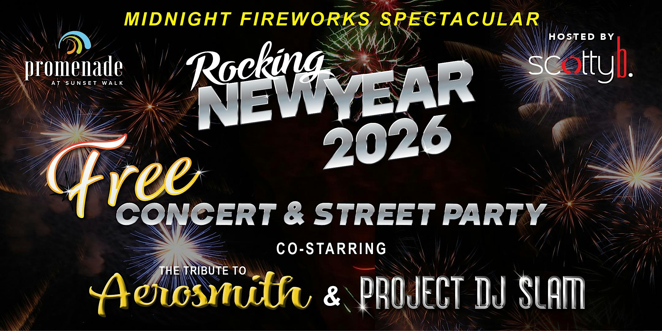 “Rocking New Year 2026” FREE Concert, Street Party & Fireworks Spectacular! at Promenade at Sunset Walk – Kissimmee, FL