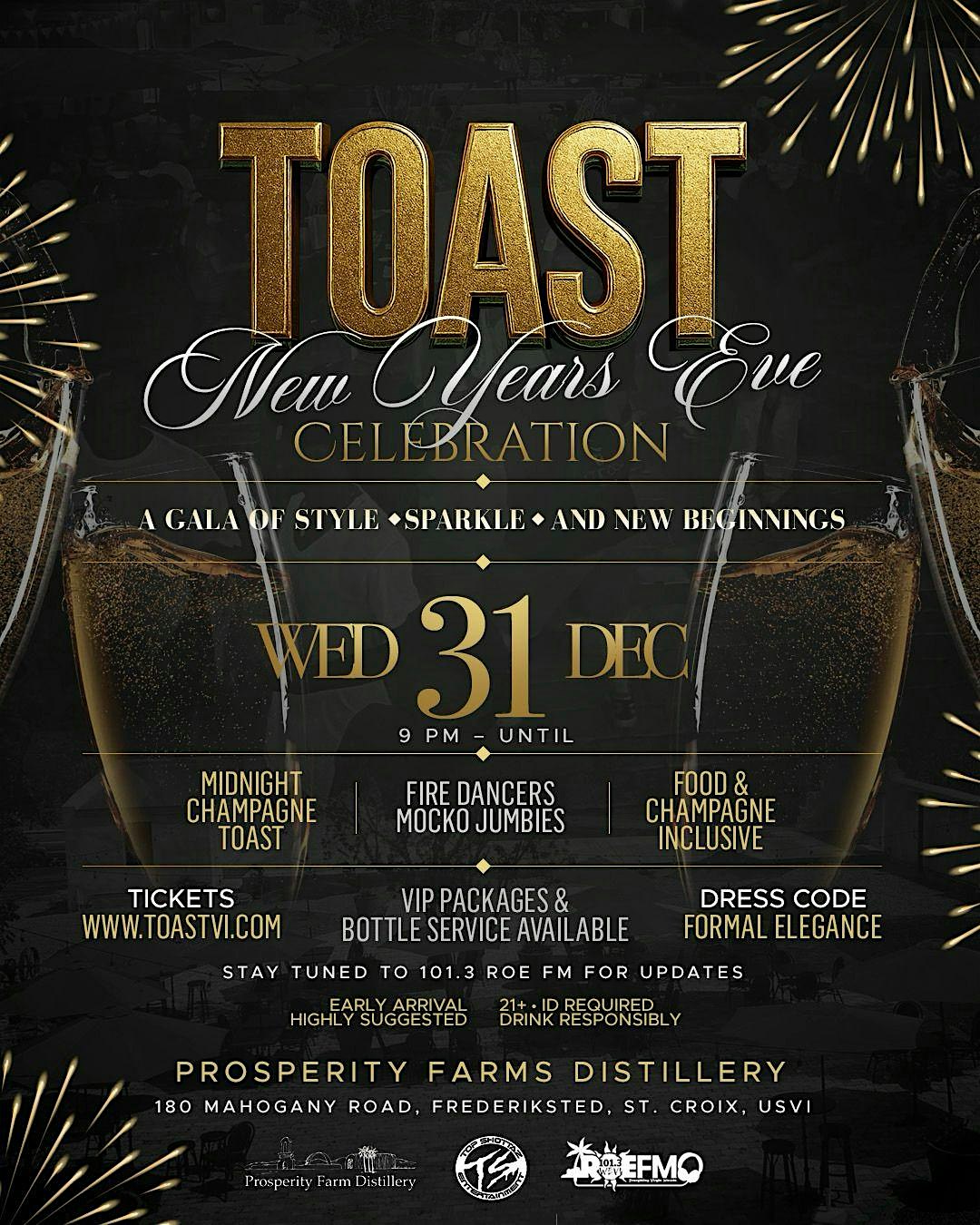 “TOAST” New Year’s Eve Celebration at Prosperity Farms Distillery – Frederiksted, St Croix