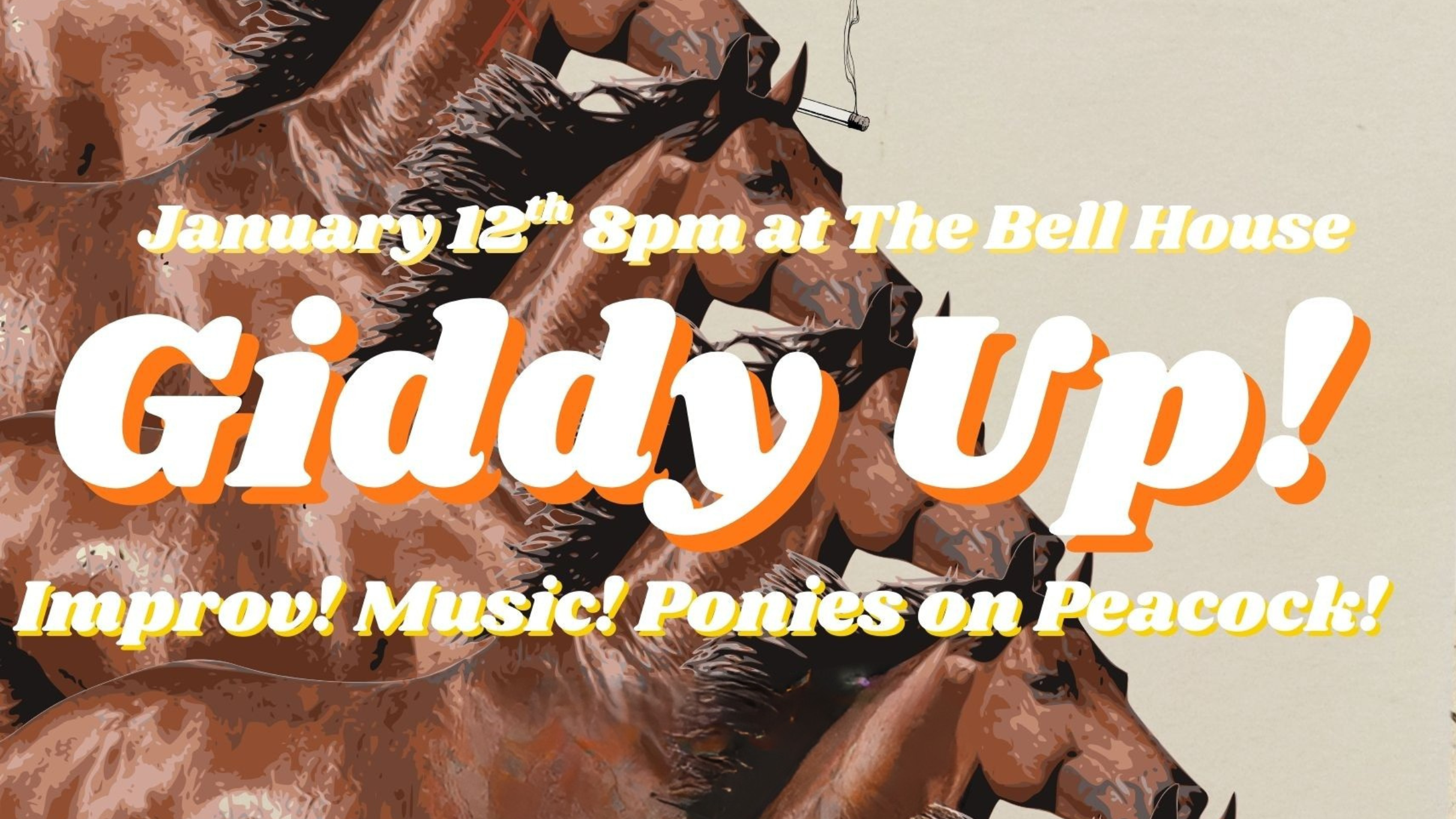 Get your tickets to see Giddy Up! Improv! Music! Ponies on Peacock! in Brooklyn, NY. Happening on Monday, January 12, 2026 at The Bell House. Doors open at 8:00 PM.