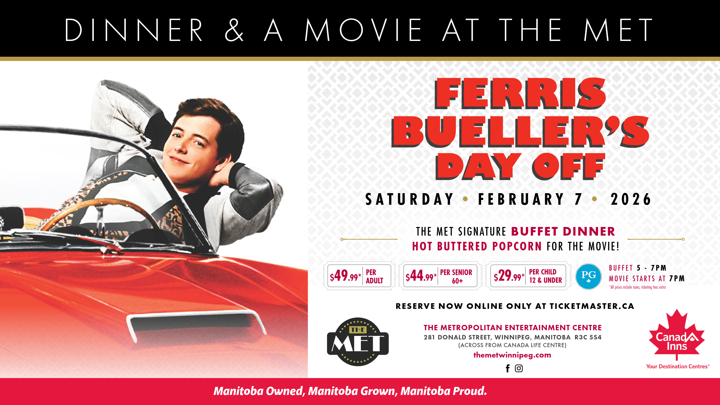 See Dinner and Movie – Ferris Bueller’s Day Off (1986) Live in Winnipeg on Saturday, February 7, 2026, Doors Open at 5:00 PM