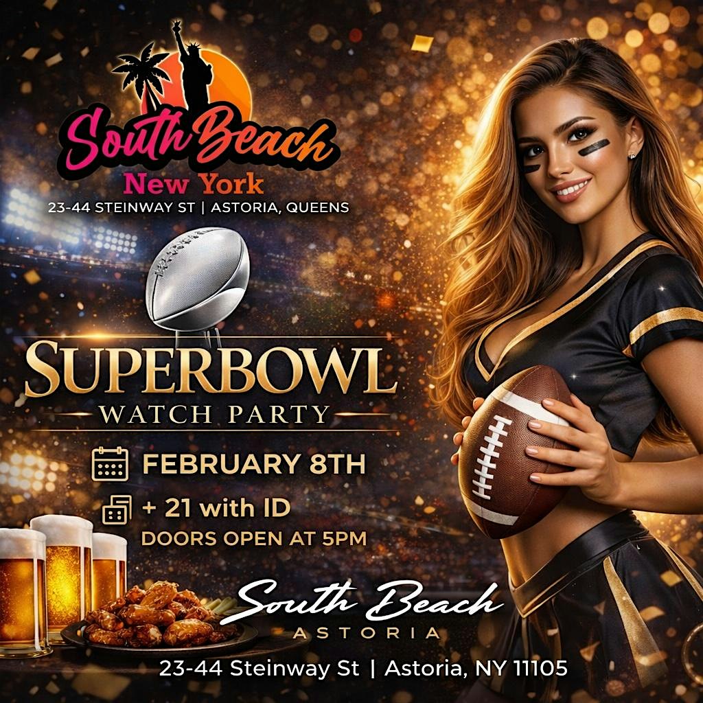 If you’re looking for the ultimate Super Bowl Watch Party in NYC, this is the one that blends football, culture, and nightlife into one nonstop experience. Join us for the Bad Bunny Super Bowl Watch Party + Afterparty on Super Bowl Sunday, February 8th, 2026, at South Beach Astoria, one of Astoria’s most popular nightlife venues.