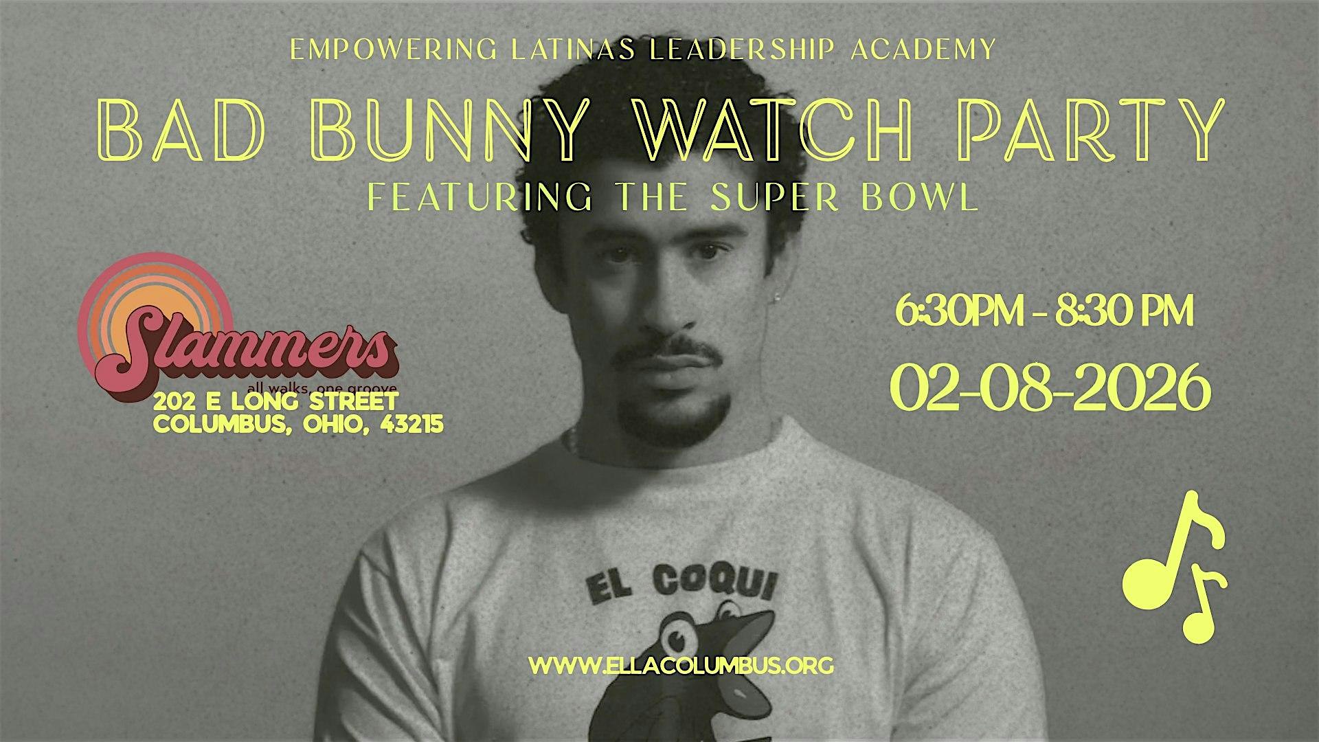 Join ELLA for a fun, high-energy Bad Bunny Super Bowl Watch Party hosted at Slammers, one of our amazing community partners! This is the perfect opportunity to enjoy the game, celebrate Bad Bunny, and connect with others who care about culture, community, and leadership.