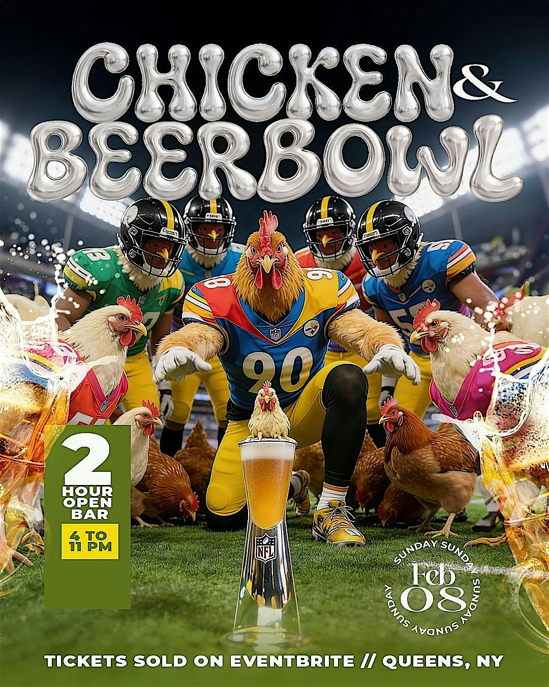 The Chicken and Beer Bowl is where culture, community, and competition collide. Expect elite wings, cold drinks, big screens, and nonstop vibes from kickoff to the final whistle. This isn’t your average Super Bowl party — it’s a curated experience for people who love good food, good drinks, and an even better crowd.