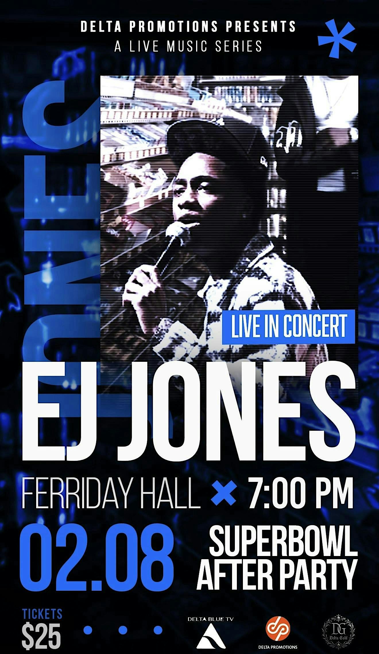 EJ JONES, MR. GAS STATION WILL TOUCH DOWN TO HOST A SUPERBOWL AFTERPARTY LIVE WITH BAND AT THE FERRIDAY HALL. SHOW UP EARLY TO SEE OPENING ACTS.