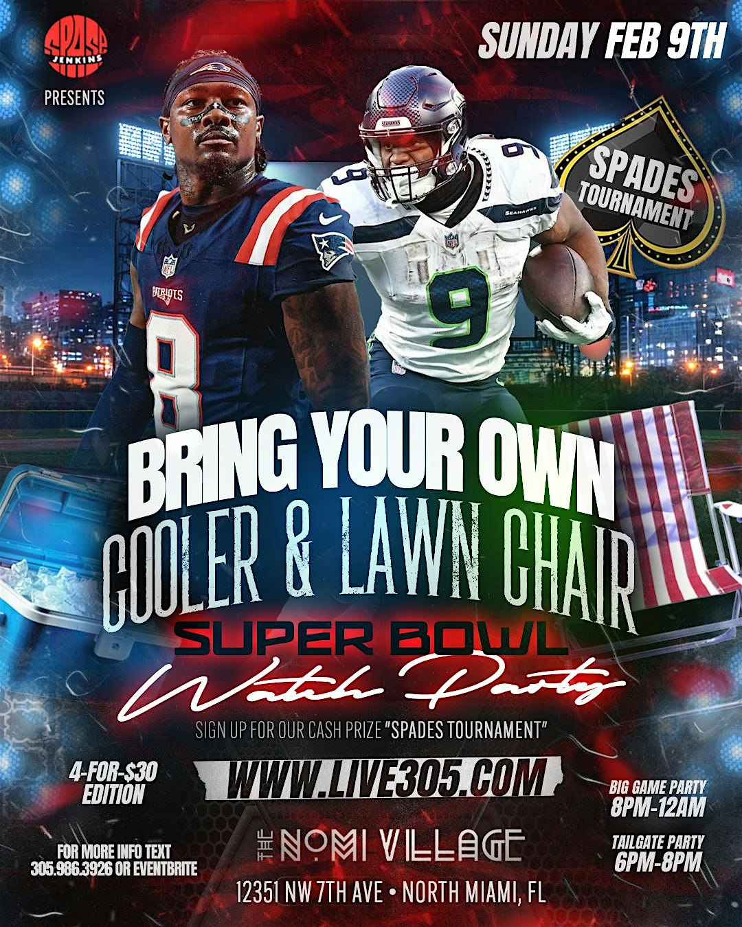 Bring Your Own Cooler, Lawn Chair, Parking & Admission all for $30..Also Enter Our Cash Prize “Spades Tournament” & Tailgate Party