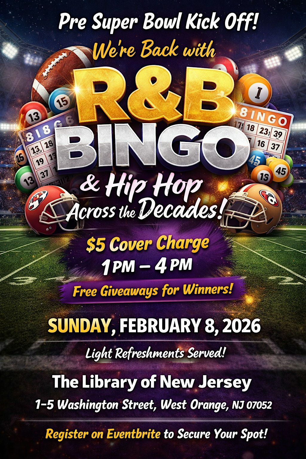 Pre Super Bowl Kick Off- R&B Bingo and Hip Hop Across the Decades at The Library of New Jersey – West Orange, NJ