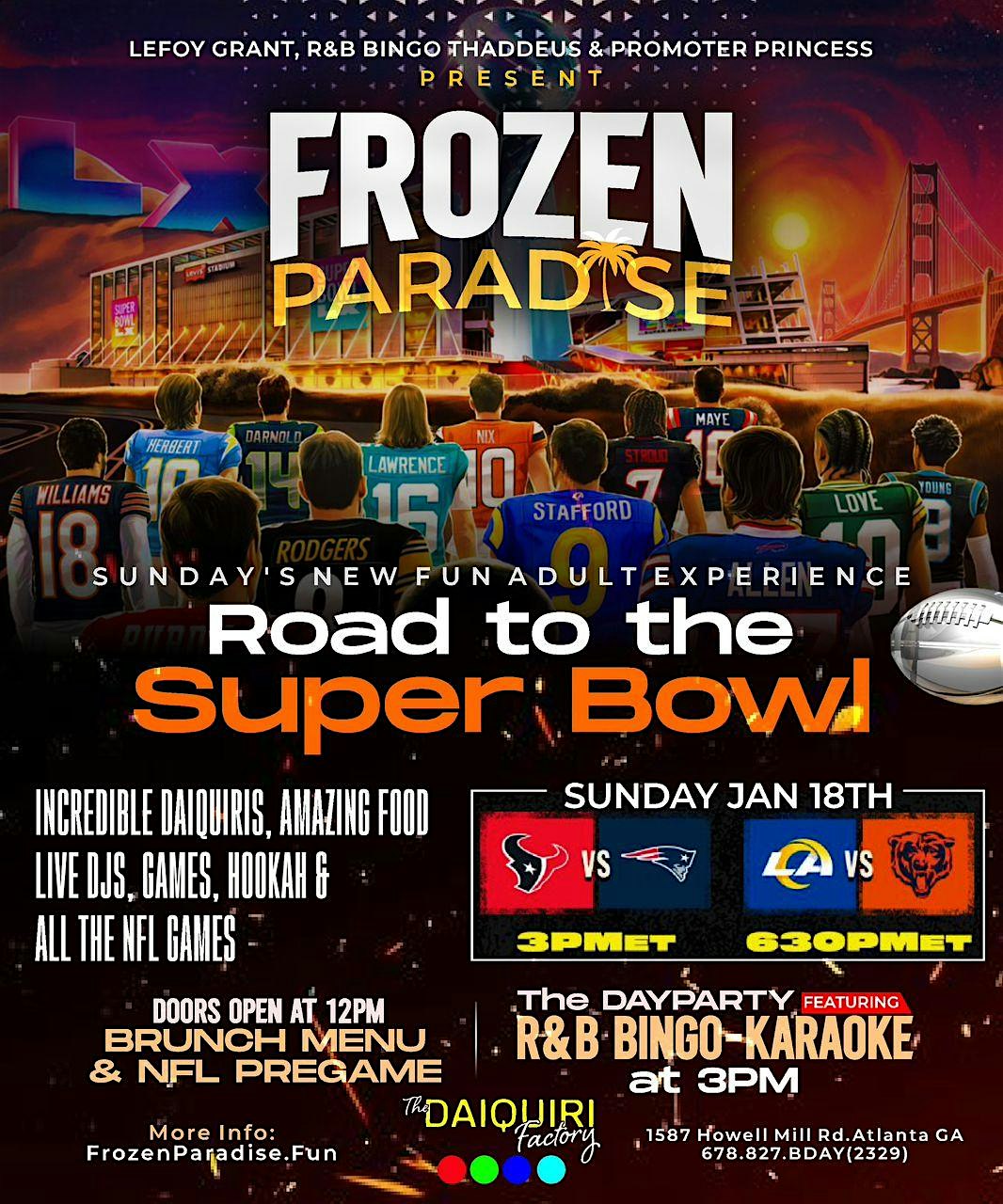 Sunday’s Favorite Adult Dayplay is “FROZEN PARADISE” @The Daiquiri Factory! at The Daiquiri Factory – Atlanta, GA