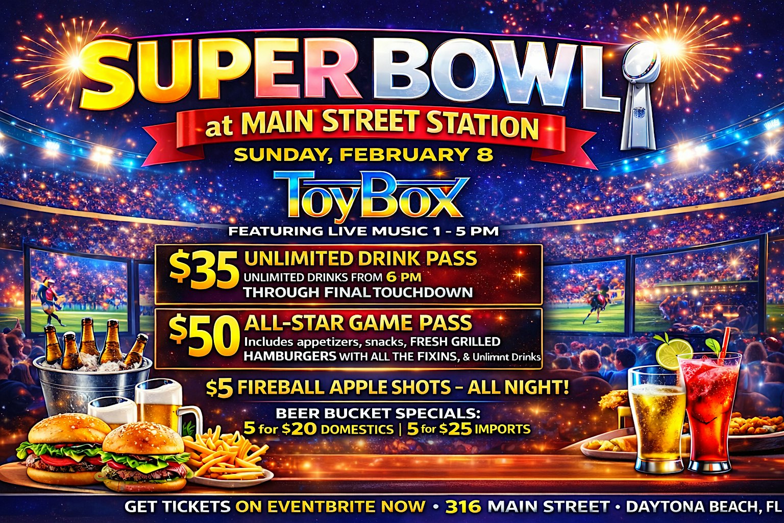 Super Bowl Party at Main Street Station at Main Street Station Authentic Garage Bar & Music Venue – Daytona Beach, FL