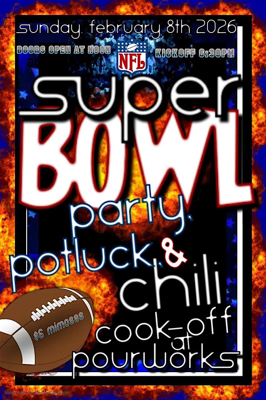 PourWorks annual Super Bowl Party, Potluck & Chili Cook off is Sunday, February 8th! Prizes, Drink Specials, Free Food (w/drink purchase)