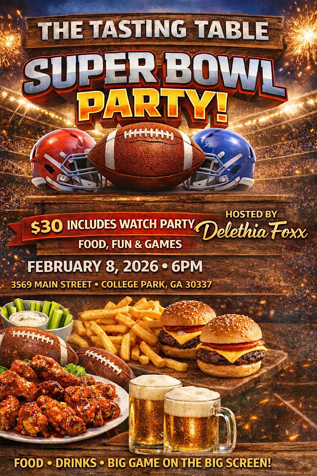 Super Bowl Party With Live Commentary and Interactive Fan Games at The Tasting Table – College Park, GA
