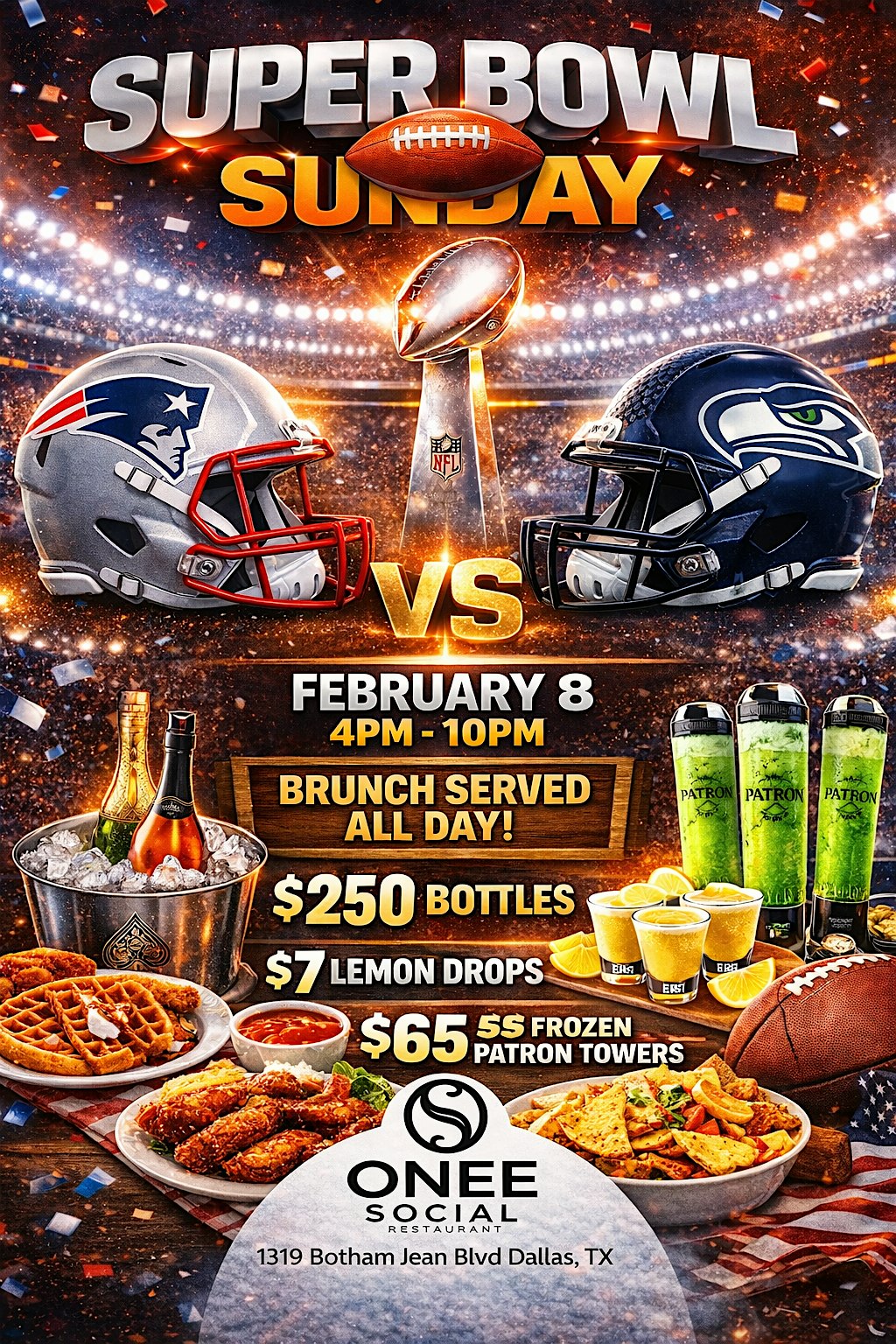 Super bowl Sunday Party @ onee social at ONEE Social Restaurant (formally Fivee Bistro) – Dallas, TX