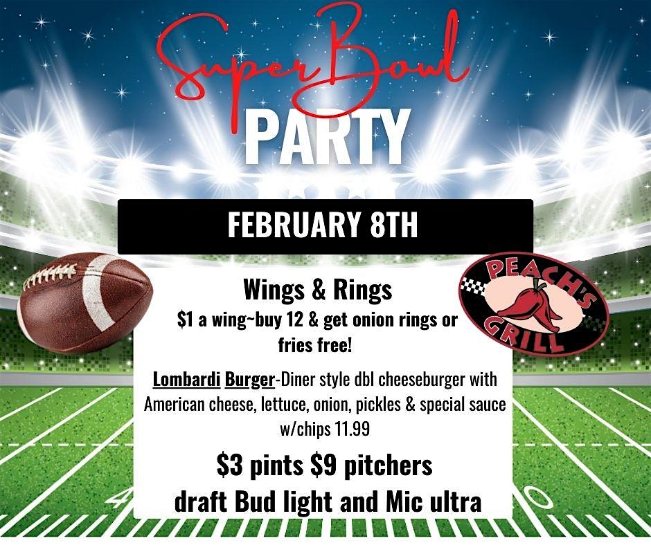 Super bowl @ the Peach! at Peach’s Grill – Yellow Springs, OH