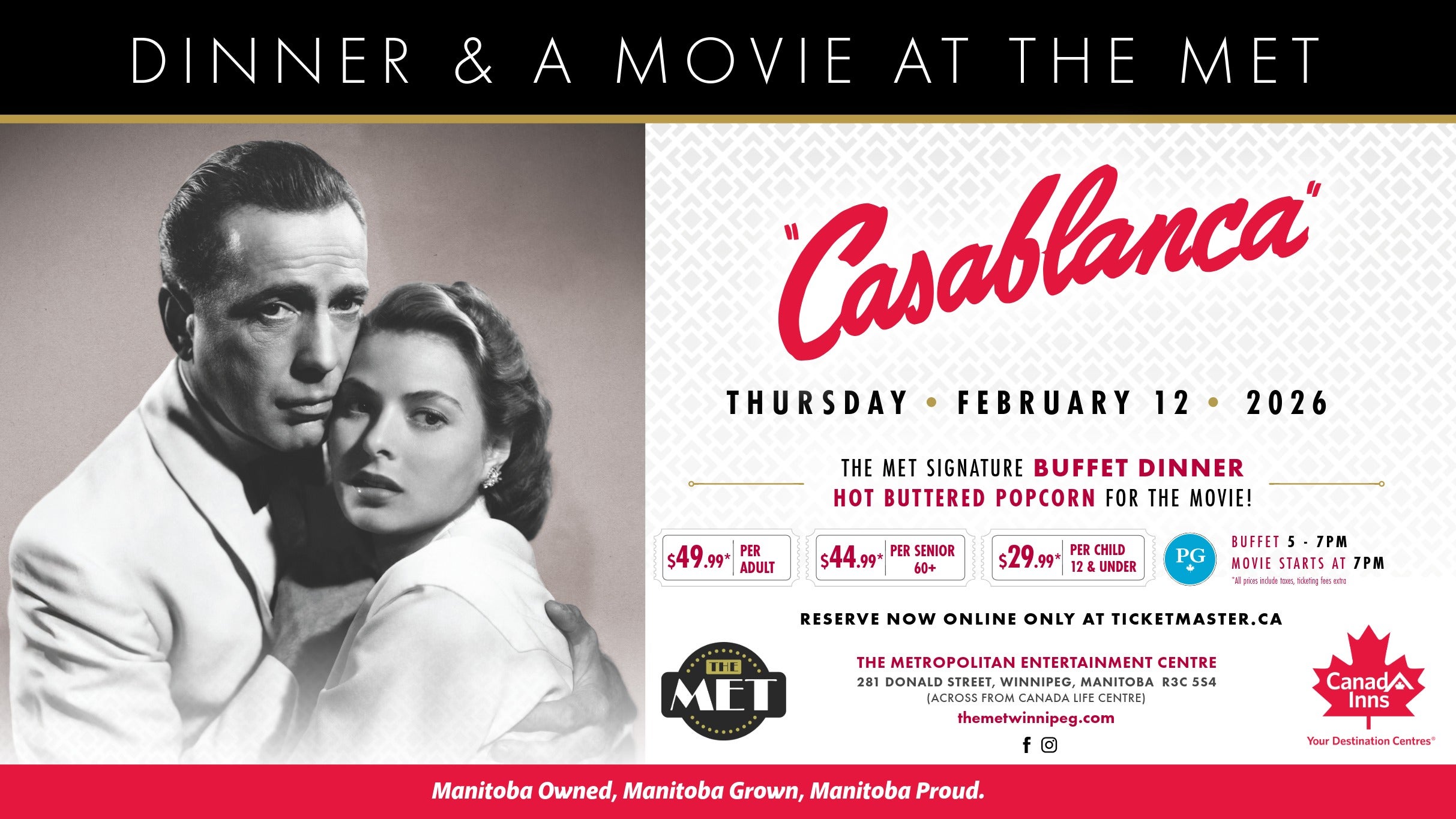 Casablanca – Dinner and Movie at The MET at The Metropolitan Entertainment Centre – Winnipeg, Canada