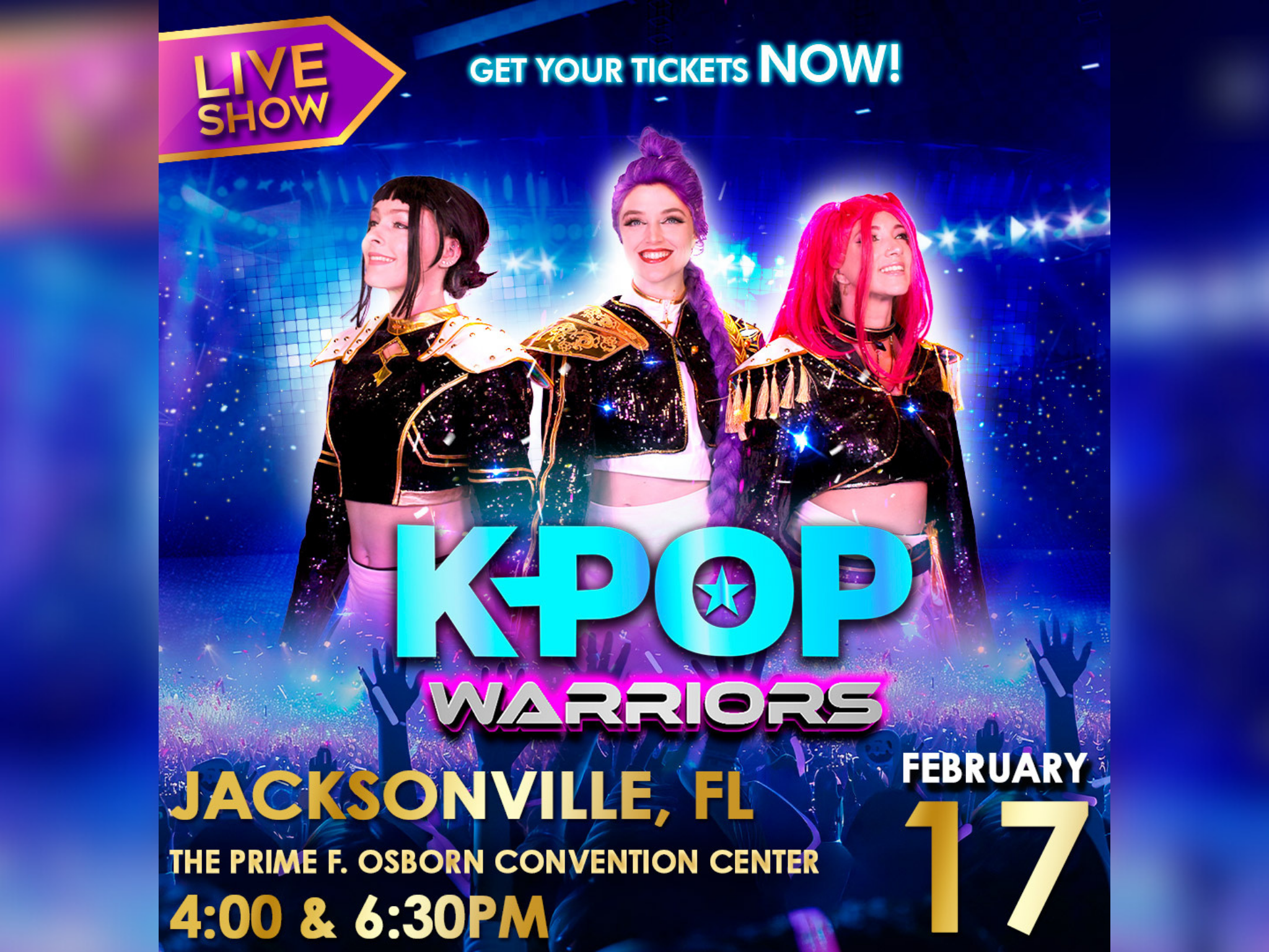 Get your tickets to see K-POP Warriors Live Show in Jacksonville, FL. Happening on Tuesday, February 17, 2026 at Prime Osborn Convention Center. Doors open at 6:30 PM.