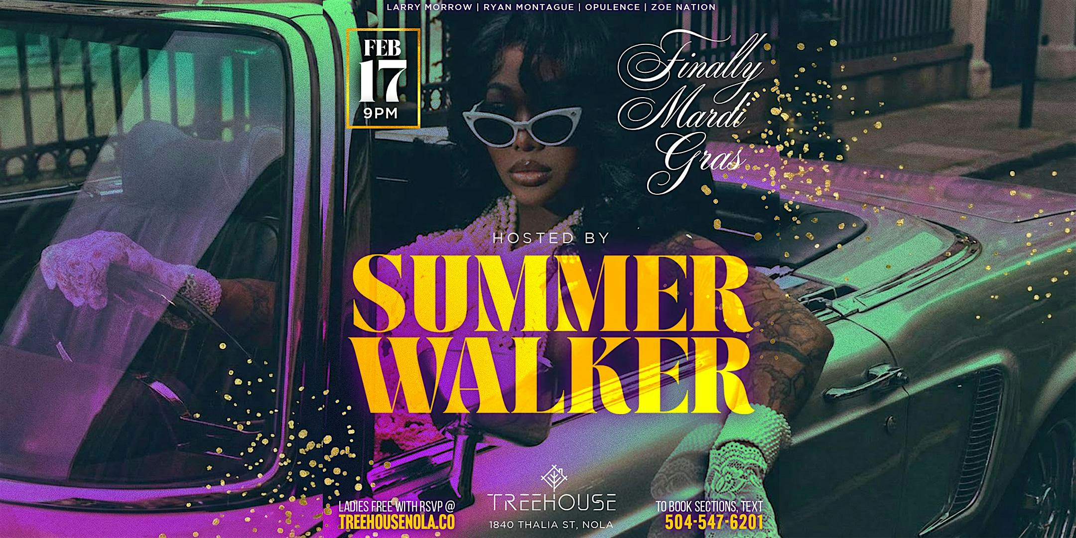 by admin07Feb [2.17] SUMMER WALKER Hosts “Finally…Mardi Gras” @ Treehouse at Treehouse – New Orleans, LA [2.17] SUMMER WALKER Hosts “Finally…Mardi Gras” @ Treehouse at Treehouse – New Orleans, LA 1 1 people viewed this event. Mardi Gras just went platinum! Join us at Treehouse Mardi Gras Night hosted by Summer Walker. Tickets-RSVP Link Date And Time Wednesday, February 18th, 2026 03:00 AM (PST) Venue Treehouse Location 1840 Thalia Street Event Types Mardi GrasParty or Social Gathering Event Category LouisianaNew Orleans Share With Friends Facebook Twitter Linkedin Xing Pinterest Share This Post: