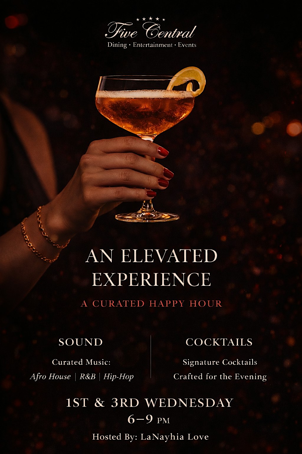by admin12Feb An Elevated Experience – A Refined Midweek Happy Hour at Five Central Houston – Houston, TX An Elevated Experience – A Refined Midweek Happy Hour at Five Central Houston – Houston, TX 4 4 people viewed this event. Step in, unwind, and enjoy an evening of curated sound, signature cocktails, and an unforgettable atmosphere. Tickets-RSVP Link Date And Time Thursday, February 19th, 2026 12:00 AM (PST) Venue Five Central Houston Location 2736 Virginia Street, Houston, TX 77098 Event Types Food & DrinkParty or Social Gathering Event Category HoustonTexas Share With Friends Facebook Twitter Linkedin Xing Pinterest Share This Post: