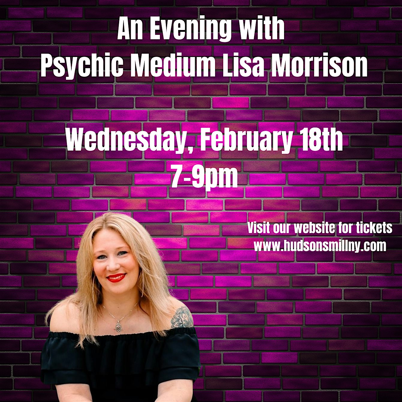 by admin12Feb An Evening with Psychic Medium Lisa Morrison at 55 W Railroad Ave – West Haverstraw, NY An Evening with Psychic Medium Lisa Morrison at 55 W Railroad Ave – West Haverstraw, NY 4 4 people viewed this event. Dinner with Psychic Medium Lisa Morrison Tickets-RSVP Link Date And Time Thursday, February 19th, 2026 12:00 AM (PST) Venue 55 W Railroad Ave Location 55 West Railroad Avenue, West Haverstraw, NY 10923 Event Types Concert or PerformanceFood & Drink Event Category New York Share With Friends Facebook Twitter Linkedin Xing Pinterest Share This Post: