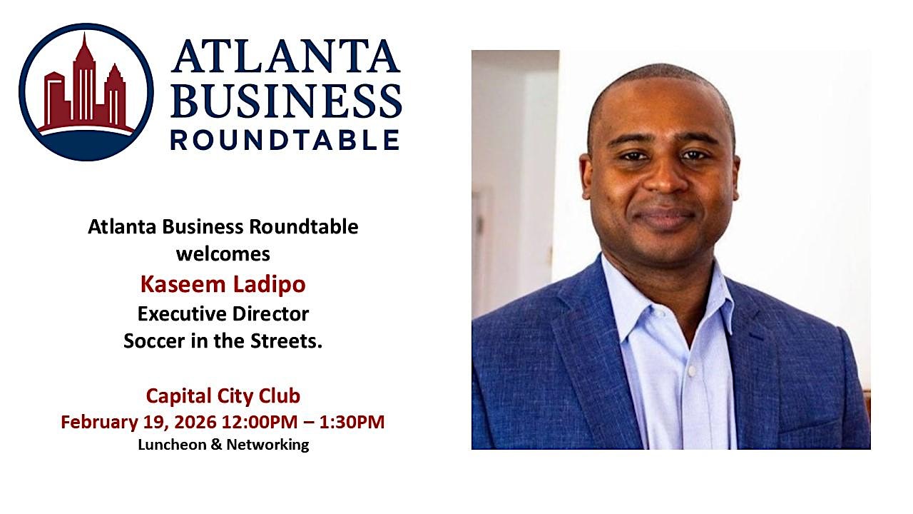 by admin12Feb Atlanta Business Roundtable welcomes Soccer in the Streets Exec. Director at Capital City Club – Atlanta, GA Atlanta Business Roundtable welcomes Soccer in the Streets Exec. Director at Capital City Club – Atlanta, GA 5 5 people viewed this event. The Atlanta Business Roundtable’s Feb 19th speaker is Kaseem Ladipo, Executive Director of Soccer in the Streets Tickets-RSVP Link Date And Time Thursday, February 19th, 2026 05:00 PM (PST) Venue Capital City Club Location 7 John Portman Boulevard Northwest, Atlanta, GA 30303 Event Category AtlantaGeorgia Share With Friends Facebook Twitter Linkedin Xing Pinterest Share This Post: