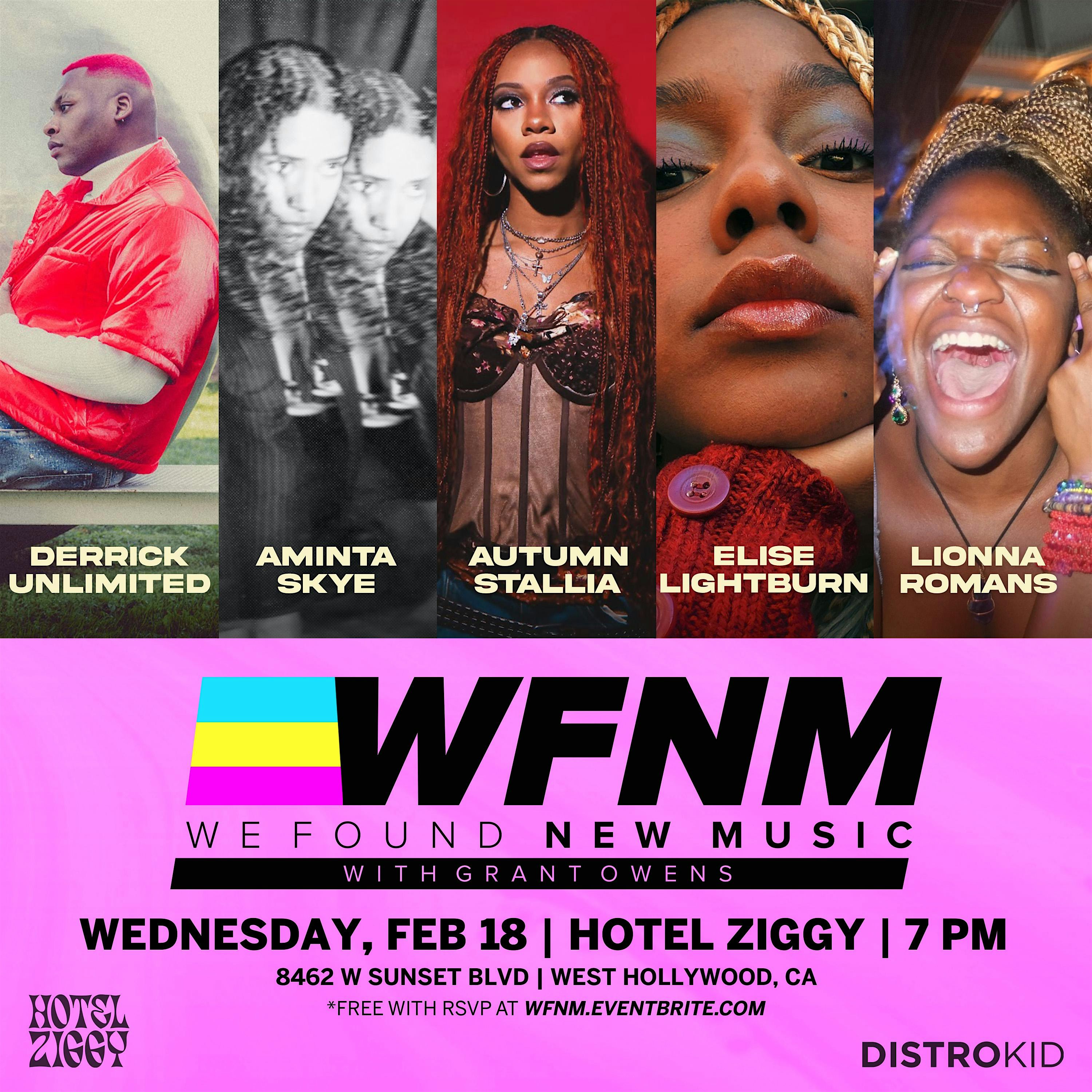 by admin12Feb Autumn Stallia Aminta Skye Elise Lightburn Derrick Unlimited Lionna Romans at Hotel Ziggy Los Angeles – West Hollywood, CA Autumn Stallia Aminta Skye Elise Lightburn Derrick Unlimited Lionna Romans at Hotel Ziggy Los Angeles – West Hollywood, CA 3 3 people viewed this event. WE FOUND NEW MUSIC Artist Discovery Concert Series LOCATION: Hotel Ziggy Free with RSVP 7:00pm Doors Tickets-RSVP Link Date And Time Thursday, February 19th, 2026 03:00 AM (PST) Venue Hotel Ziggy Los Angeles Location 8462 West Sunset Boulevard, West Hollywood, CA 90069 Event Types Concert or PerformanceMusic Event Category California Share With Friends Facebook Twitter Linkedin Xing Pinterest Share This Post: