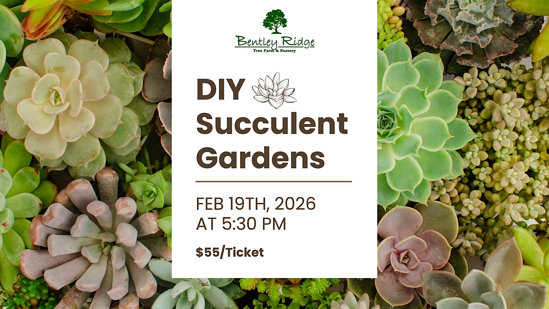 by admin12Feb DIY Succulent Gardens Workshop at Bentley Ridge Tree Farm – Grimes, IA DIY Succulent Gardens Workshop at Bentley Ridge Tree Farm – Grimes, IA 1 1 people viewed this event. Shake off the winter blues and get your hands dirty at our DIY Succulent Gardens Workshop—a fun, creative evening surrounded by plants! Tickets-RSVP Link Date And Time Thursday, February 19th, 2026 11:00 PM (PST) Venue Bentley Ridge Tree Farm Location 4400 Northwest 1st Street, Grimes, IA 50111 Event Category Iowa Share With Friends Facebook Twitter Linkedin Xing Pinterest Share This Post: