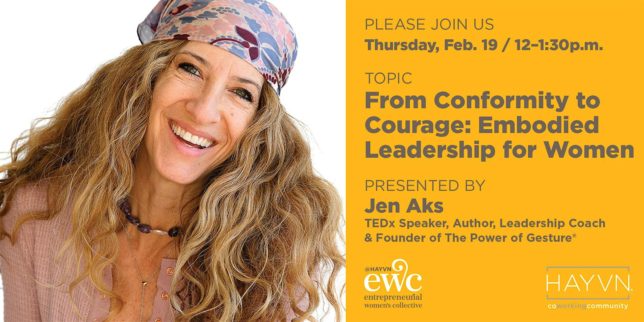 by admin12Feb Entrep. Women’s Collective (EWC): From Conformity to Courage at HAYVN – Darien, CT Entrep. Women’s Collective (EWC): From Conformity to Courage at HAYVN – Darien, CT 3 3 people viewed this event. Entrepreneurial women luncheon w/ Jen Aks, TEDx Speaker, Author, Leadership Coach & The Power of Gesture, on embodied leadership for women. Tickets-RSVP Link Date And Time Thursday, February 19th, 2026 05:00 PM (PST) Venue HAYVN Location 320 Boston Post Road, Darien, CT 6820 Event Category BridgeportConnecticut Share With Friends Facebook Twitter Linkedin Xing Pinterest Share This Post: