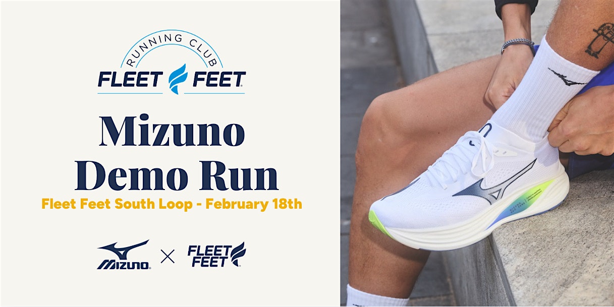 by admin12Feb Fleet Feet South Loop: Mizuno Demo Run at Fleet Feet South Loop – Chicago, IL Fleet Feet South Loop: Mizuno Demo Run at Fleet Feet South Loop – Chicago, IL 2 2 people viewed this event. Lace up and join us for a fun run with Mizuno! Tickets-RSVP Link Date And Time Thursday, February 19th, 2026 12:00 AM (PST) Venue Fleet Feet South Loop Location 150 West Roosevelt Road, Chicago, IL 60605 Event Types Sports & Fitness Event Category ChicagoIllinois Share With Friends Facebook Twitter Linkedin Xing Pinterest Share This Post: