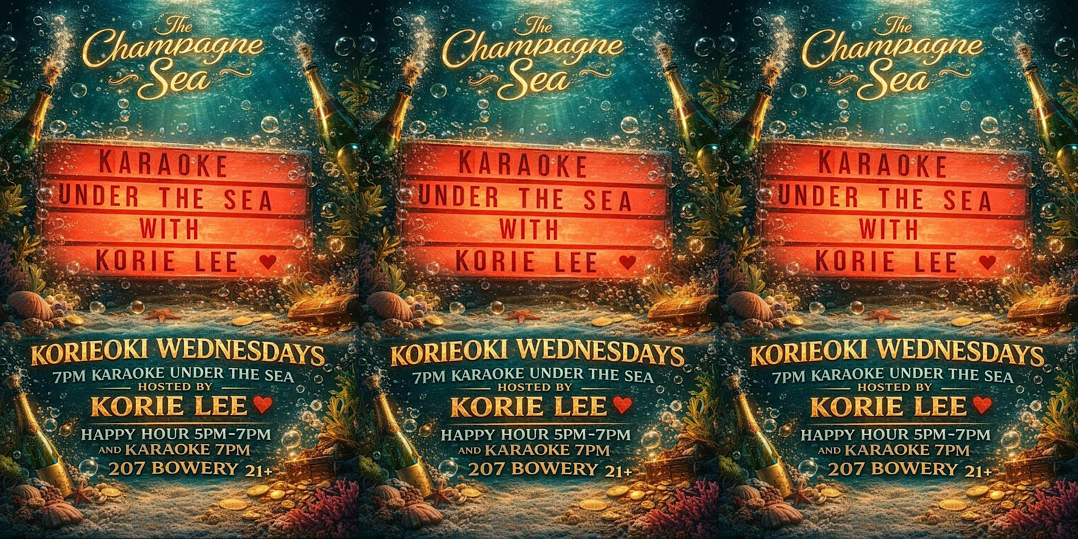 by admin13Feb Karaoke Under The Sea With Korie Lee at Champagne Problems – New York, NY Karaoke Under The Sea With Korie Lee at Champagne Problems – New York, NY 1 1 people viewed this event. Korieoki Wednesdays at 7pm in the Champagne Sea at Champagne Problems Tickets-RSVP Link Date And Time Thursday, February 19th, 2026 12:00 AM (PST) Venue Champagne Problems Location 207 Bowery, New York, NY 10002 Event Types Party or Social GatheringPerforming & Visual Arts Event Category New YorkNew York City Share With Friends Facebook Twitter Linkedin Xing Pinterest Share This Post: