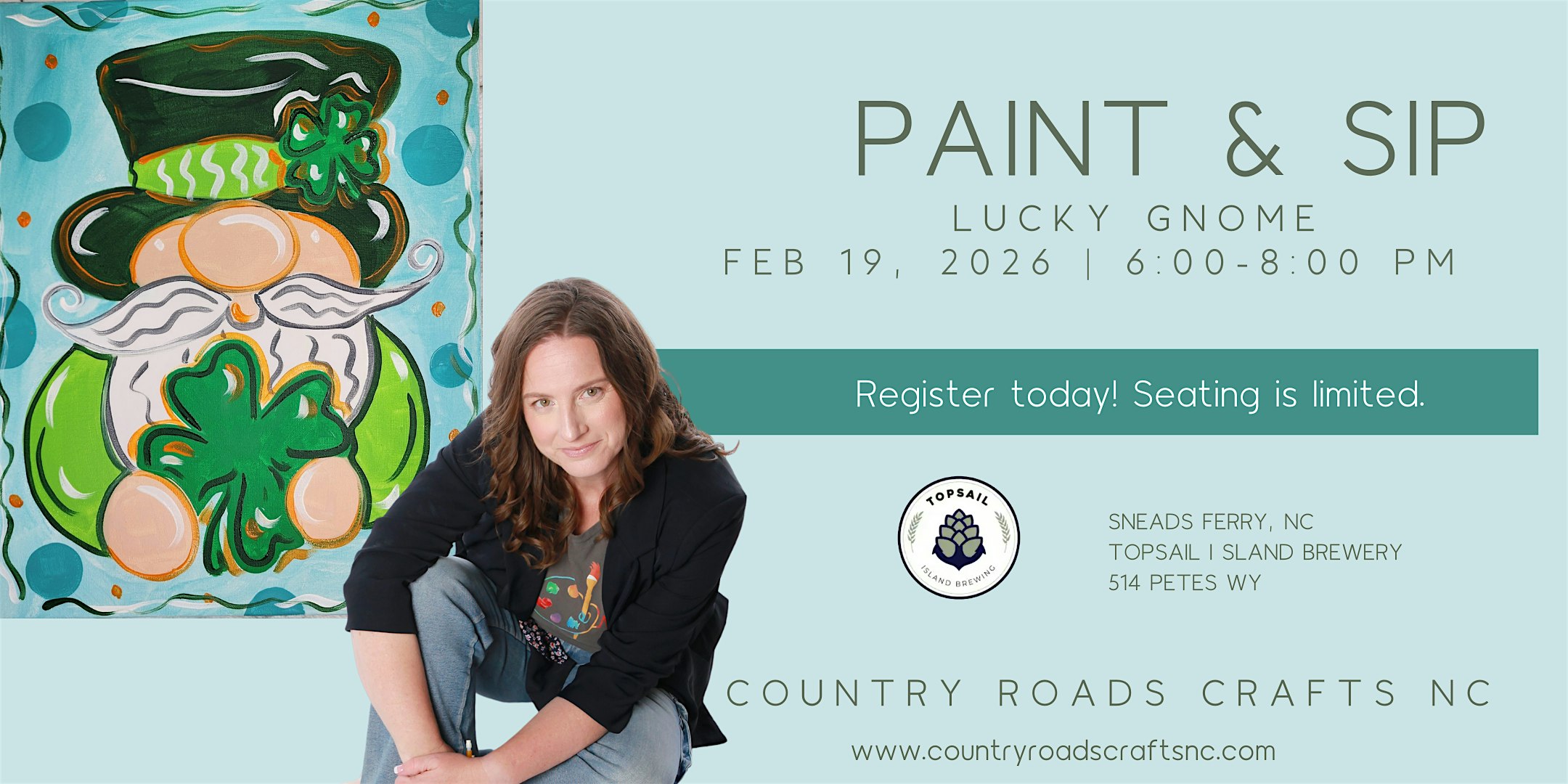 by admin12Feb Paint & Sip: Lucky Gnome @ Topsail Island Brewing at Topsail Island Brewing – Sneads Ferry, NC Paint & Sip: Lucky Gnome @ Topsail Island Brewing at Topsail Island Brewing – Sneads Ferry, NC 3 3 people viewed this event. Unleash your inner artist with a twist and a sip at our Paint & Sip event featuring the charming Lucky Gnome. Tickets-RSVP Link Date And Time Thursday, February 19th, 2026 11:00 PM (PST) Venue Topsail Island Brewing Location 514 Petes Way, Sneads Ferry, NC 28460 Event Types Party or Social GatheringPerforming & Visual Arts Event Category North Carolina Share With Friends Facebook Twitter Linkedin Xing Pinterest Share This Post: