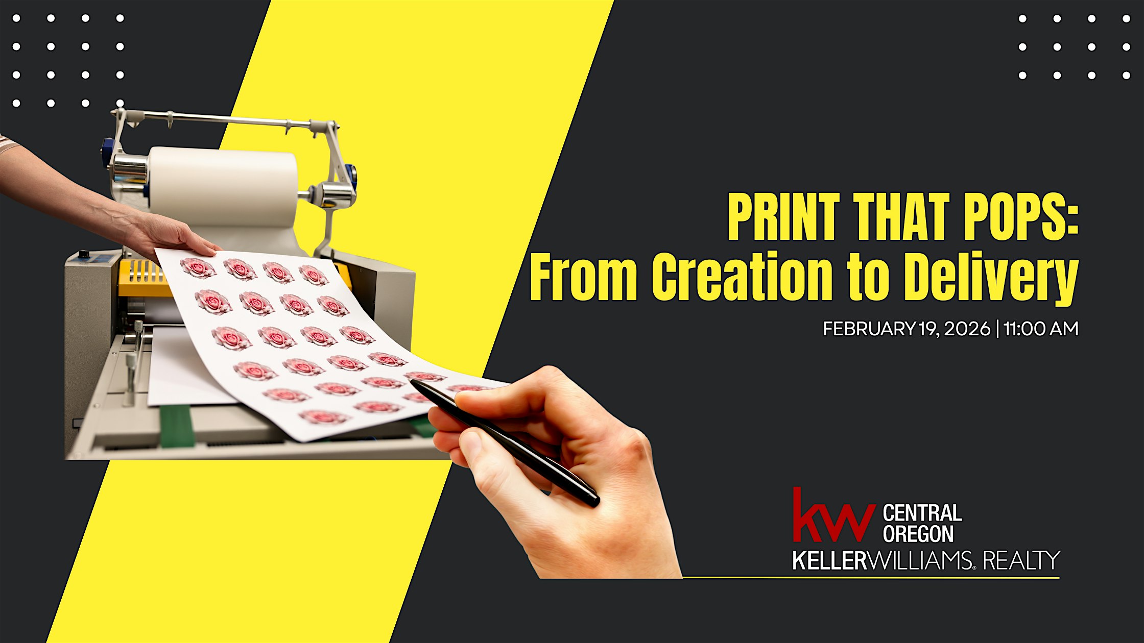 by admin12Feb Print That Pops: From creation to delivery at Keller Williams Central Oregon – Bend, OR Print That Pops: From creation to delivery at Keller Williams Central Oregon – Bend, OR 2 2 people viewed this event. From creation to delivery Tickets-RSVP Link Date And Time Thursday, February 19th, 2026 07:00 PM (PST) Venue Keller Williams Central Oregon Location 233 Southwest Wilson Avenue, Bend, OR 97702 Event Category Oregon Share With Friends Facebook Twitter Linkedin Xing Pinterest Share This Post: