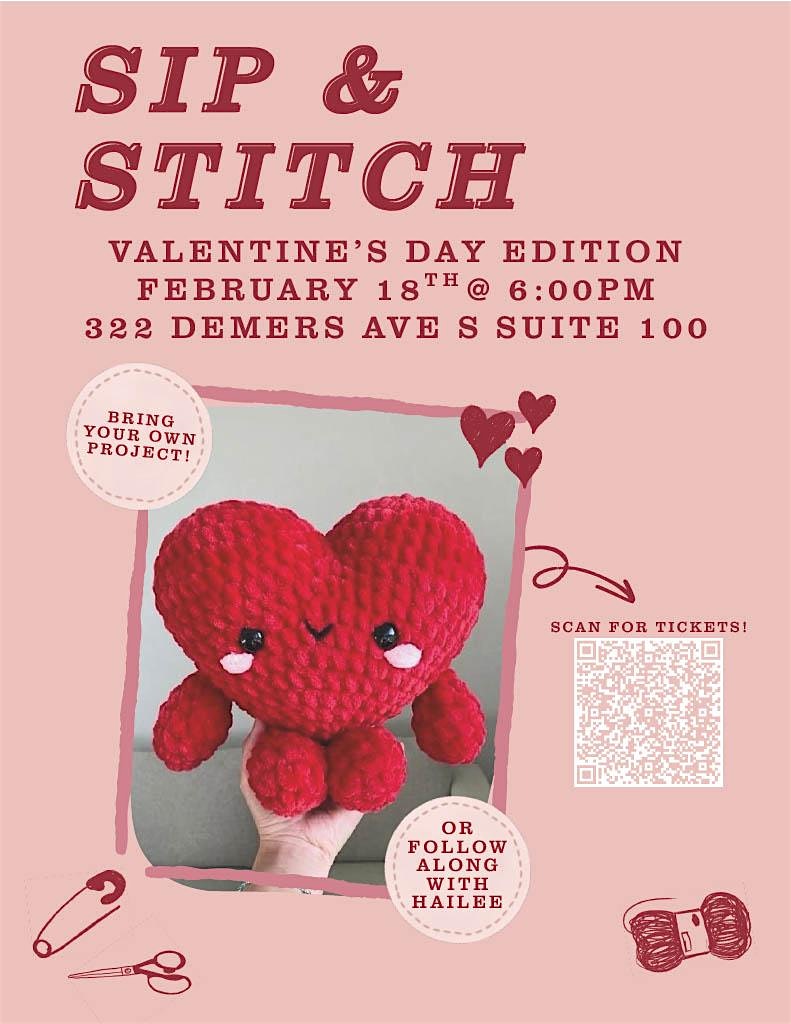 by admin12Feb Sip & Stitch at Sweetwaters Coffee & Tea – Grand Forks, ND Sip & Stitch at Sweetwaters Coffee & Tea – Grand Forks, ND 3 3 people viewed this event. Get ready to relax, sip on your favorite drink, and crochet away the stress at Sip & Stitch – a cozy crafting event you won’t want to miss! Tickets-RSVP Link Date And Time Thursday, February 19th, 2026 12:00 AM (PST) Venue Sweetwaters Coffee & Tea Location 322 Demers Avenue, Grand Forks, ND 58201 Event Category North Dakota Share With Friends Facebook Twitter Linkedin Xing Pinterest Share This Post: