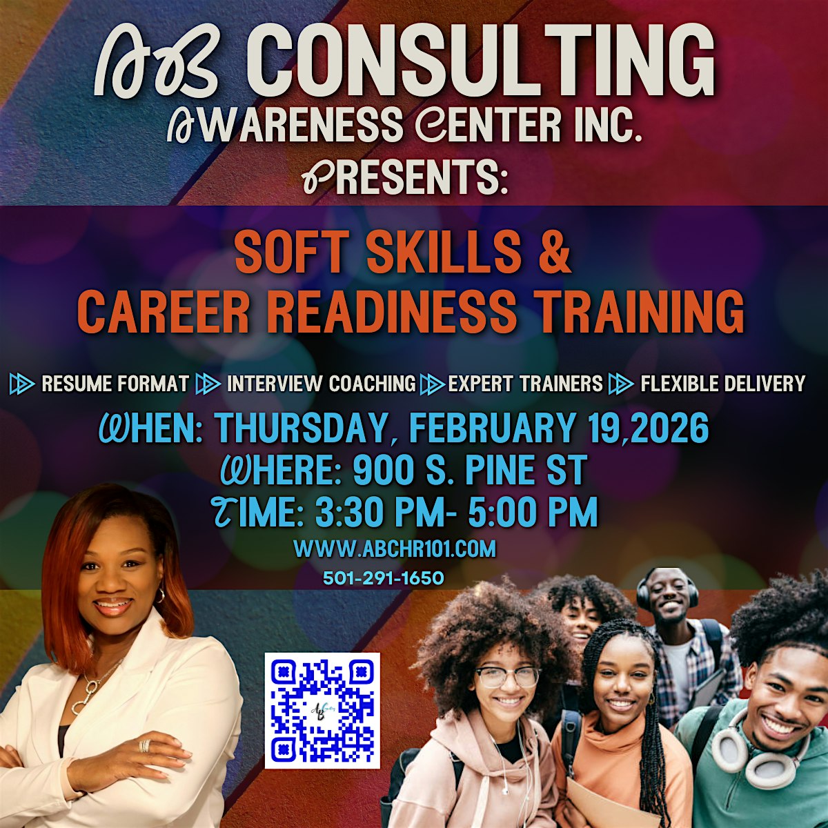 by admin12Feb Soft Skills & Career Readiness Training at 900 S Pine St – Little Rock, AR Soft Skills & Career Readiness Training at 900 S Pine St – Little Rock, AR 6 6 people viewed this event. ABC bridges the gap between education, business, and empowering communities through compliance, youth advocacy, and operational excellence. Tickets-RSVP Link Date And Time Thursday, February 19th, 2026 09:00 PM (PST) Venue 900 S Pine St Location 900 South Pine Street, Little Rock, AR 72204 Event Category ArkansasLittle Rock Share With Friends Facebook Twitter Linkedin Xing Pinterest Share This Post: