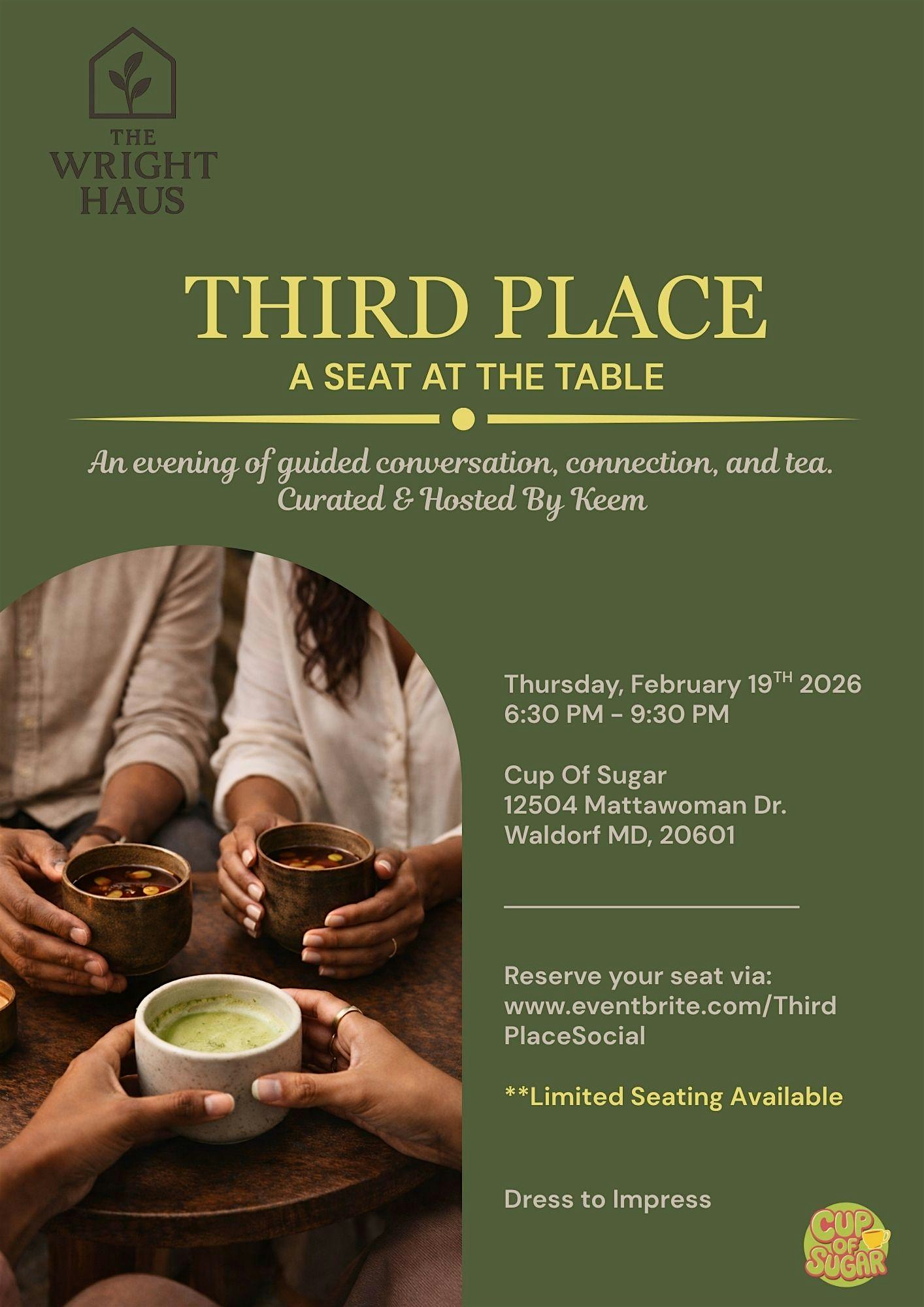 by admin12Feb Third Place | A Social Experience at Cup of Sugar Tea Lounge – Waldorf, MD Third Place | A Social Experience at Cup of Sugar Tea Lounge – Waldorf, MD 3 3 people viewed this event. Chill, connect, and vibe with new friends at Third Place | A Social Experience — A Seat at the Table Tickets-RSVP Link Date And Time Thursday, February 19th, 2026 11:00 PM (PST) Venue Cup of Sugar Tea Lounge Location 12540 Mattawoman Drive, Waldorf, MD 20601 Event Types Community & CultureOtherParty or Social Gathering Event Category MarylandNational Harbor Share With Friends Facebook Twitter Linkedin Xing Pinterest Share This Post: