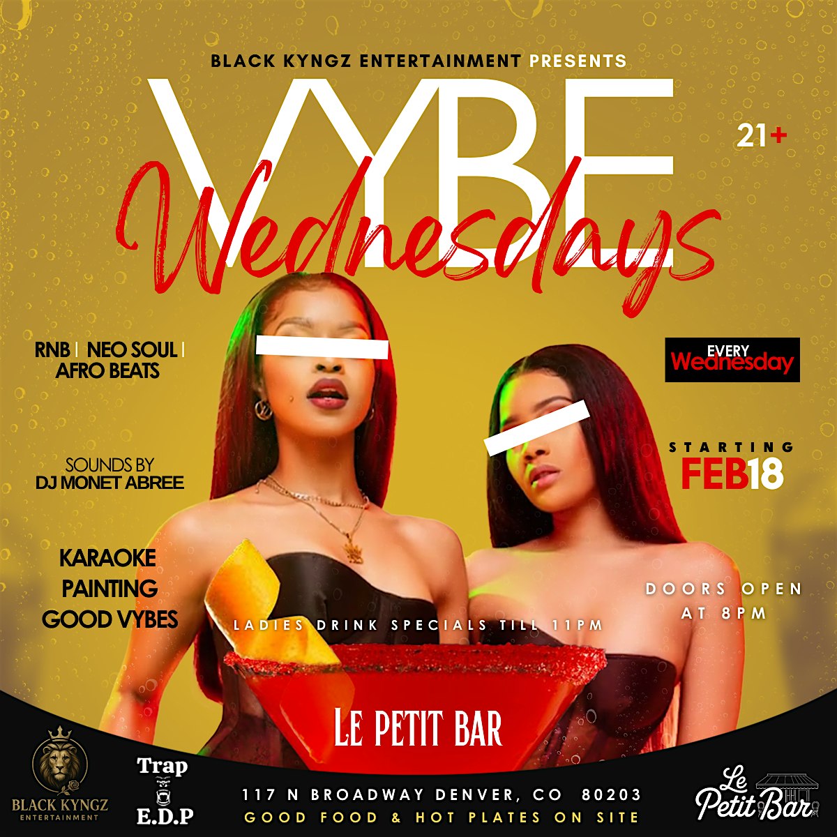 by admin12Feb VYBE WEDNESDAYS at 117 N Broadway – Denver, CO VYBE WEDNESDAYS at 117 N Broadway – Denver, CO 4 4 people viewed this event. Get ready to vibe and sing the night away at VYBE WEDNESDAYS, where the music is great and the energy is even greater! Tickets-RSVP Link Date And Time Thursday, February 19th, 2026 03:00 AM (PST) Venue 117 N Broadway Location 117 North Broadway, Denver, CO 80203 Event Types MusicParty or Social Gathering Event Category ColoradoDenver Share With Friends Facebook Twitter Linkedin Xing Pinterest Share This Post: