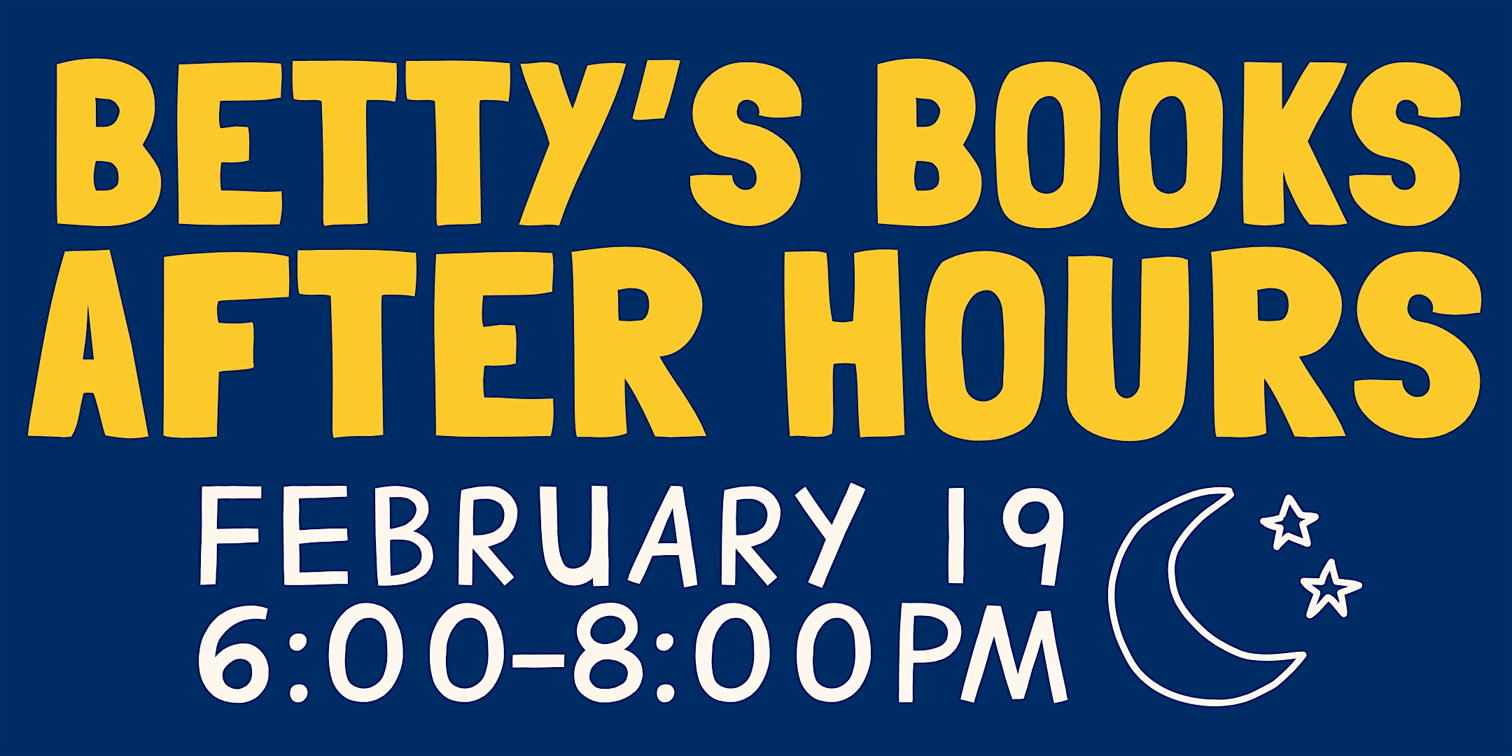 by admin12Feb Betty’s Books After Hours at Betty’s Books – Webster Groves, MO Betty’s Books After Hours at Betty’s Books – Webster Groves, MO 3 3 people viewed this event. Swing by for a bit of late-night fun! Tickets-RSVP Link Date And Time Friday, February 20th, 2026 12:00 AM (PST) Venue Betty's Books Location 8772 Big Bend Boulevard, Webster Groves, MO 63119 Event Types Community & CultureOtherParty or Social Gathering Event Category Missouri Share With Friends Facebook Twitter Linkedin Xing Pinterest Share This Post: