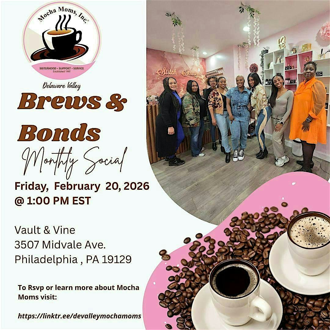 by admin13Feb BREWS & BONDS MONTHLY DAYTIME SOCIAL at Vault + Vine – Philadelphia, PA BREWS & BONDS MONTHLY DAYTIME SOCIAL at Vault + Vine – Philadelphia, PA 2 2 people viewed this event. Join the Delaware Valley Mocha Moms for our monthly Brews and Bonds daytime social. Tickets-RSVP Link Date And Time Friday, February 20th, 2026 06:00 PM (PST) Venue Vault + Vine Location 3507 Midvale Avenue, Philadelphia, PA 19129 Event Types Food & DrinkParty or Social Gathering Event Category PennsylvaniaPhiladelphia Share With Friends Facebook Twitter Linkedin Xing Pinterest Share This Post: