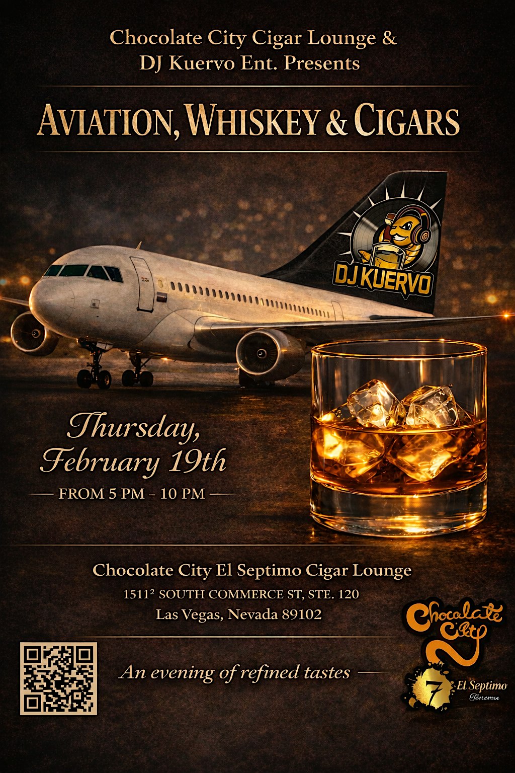 by admin12Feb Choc City Cigar Lounge & DJ Kuervo Presents Aviation , Whiskey and Cigars at Chocolate City El Septimo Cigar Lounge – Las Vegas, NV Choc City Cigar Lounge & DJ Kuervo Presents Aviation , Whiskey and Cigars at Chocolate City El Septimo Cigar Lounge – Las Vegas, NV 3 3 people viewed this event. Kick back with DJ Kuervo Ent, sipping whiskey, puffing cigars, and soaking in that aviation vibe live! Tickets-RSVP Link Date And Time Friday, February 20th, 2026 01:00 AM (PST) Venue Chocolate City El Septimo Cigar Lounge Location 1511 South Commerce Street, Las Vegas, NV 89102 Event Types Food & DrinkParty or Social Gathering Event Category Las VegasNevada Share With Friends Facebook Twitter Linkedin Xing Pinterest Share This Post: