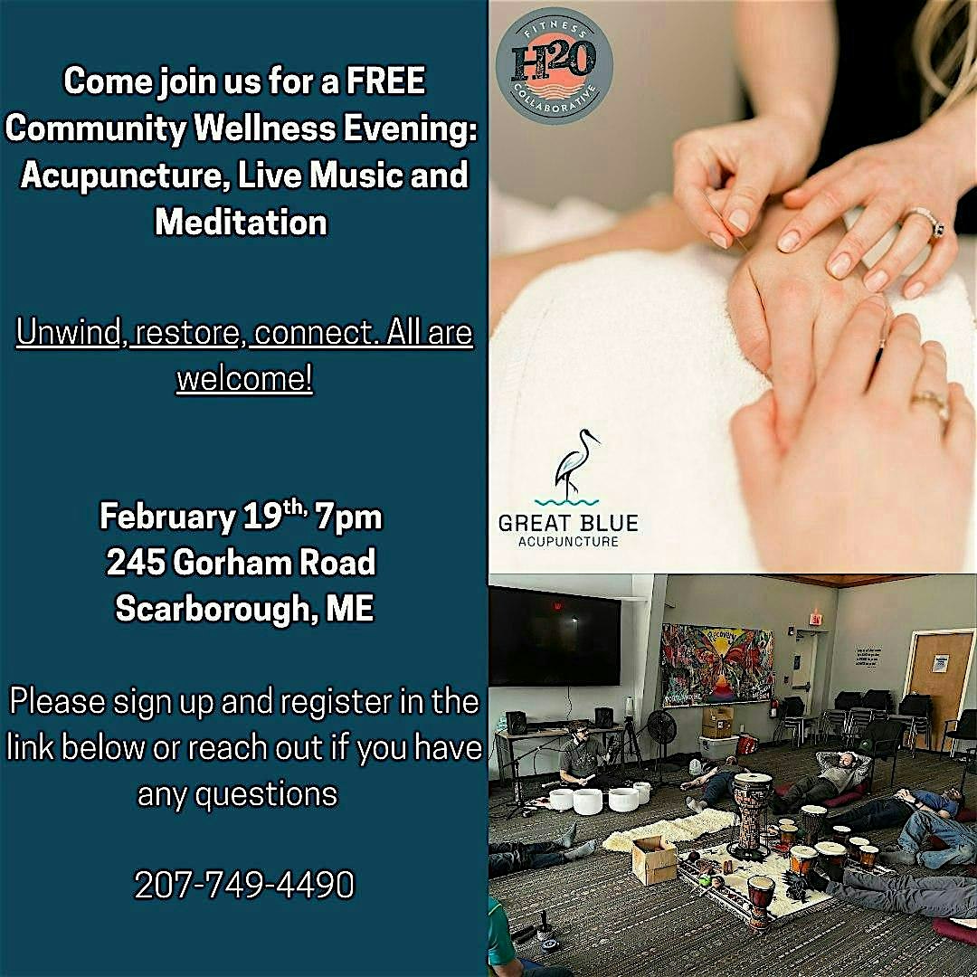 by admin12Feb Come join us for a FREE Community Wellness Evening at 245 Gorham Rd – Scarborough, ME Come join us for a FREE Community Wellness Evening at 245 Gorham Rd – Scarborough, ME 5 5 people viewed this event. Come join us for a FREE Community Wellness Evening: Acupuncture, Live Music and Meditation – Unwind, restore, connect. All are welcome! Tickets-RSVP Link Date And Time Friday, February 20th, 2026 12:00 AM (PST) Venue 245 Gorham Rd Location 245 Gorham Road, Scarborough, ME 4074 Event Category Maine Share With Friends Facebook Twitter Linkedin Xing Pinterest Share This Post: