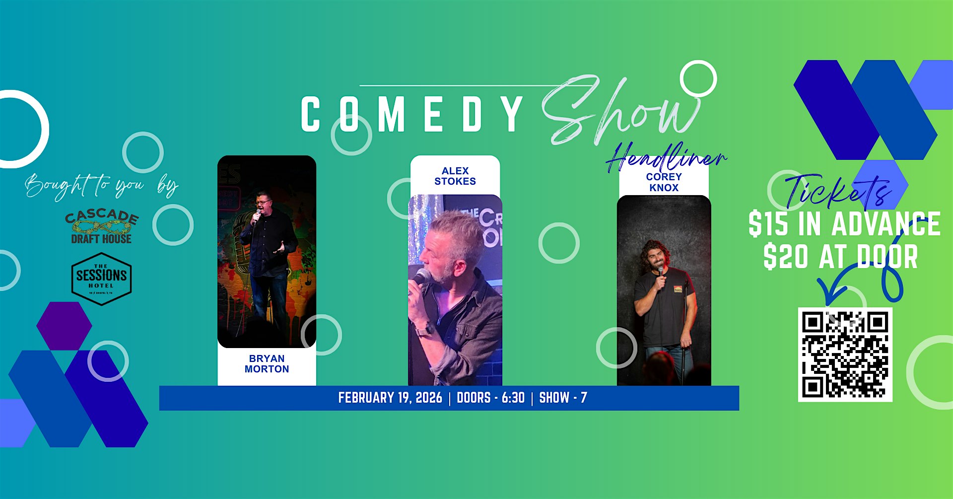 by admin12Feb Comedy Night w/ Corey Knox, Alex Stokes and your host Bryan Morton at Cascade Draft House – Bristol, TN Comedy Night w/ Corey Knox, Alex Stokes and your host Bryan Morton at Cascade Draft House – Bristol, TN 5 5 people viewed this event. We have a banger coming your way! The laughter will not stop. Each ticket is good for two draft choices. Tickets-RSVP Link Date And Time Friday, February 20th, 2026 12:00 AM (PST) Venue Cascade Draft House Location 828 State Street, Bristol, TN 37620 Event Types ComedyConcert or PerformancePerforming & Visual Arts Event Category Tennessee Share With Friends Facebook Twitter Linkedin Xing Pinterest Share This Post: