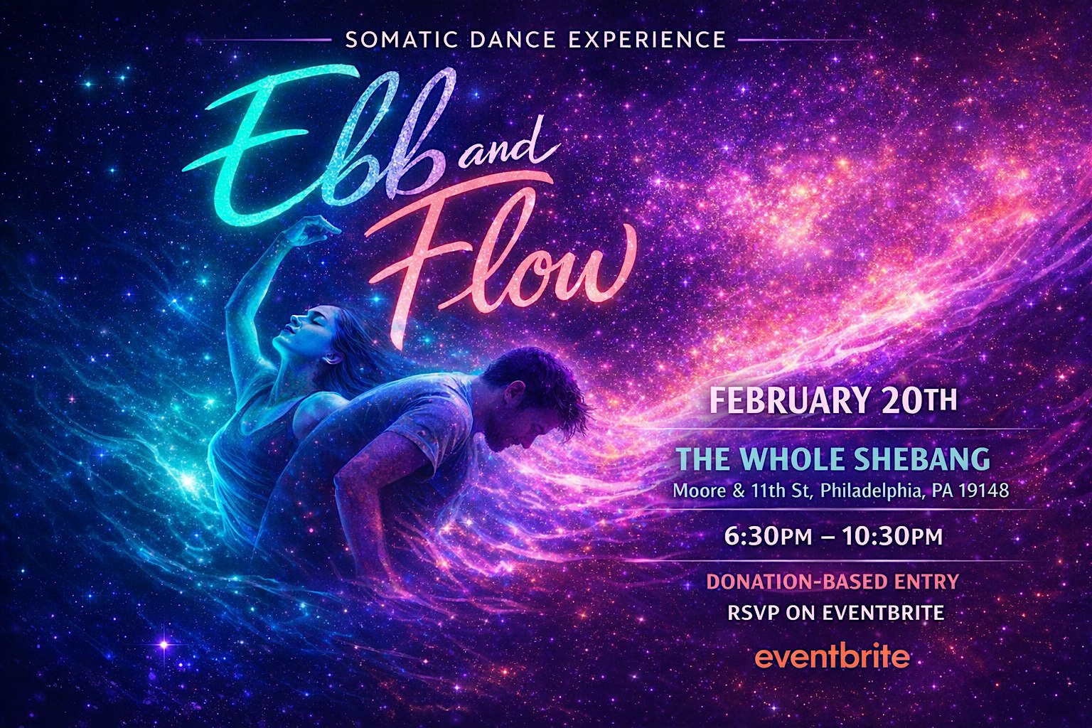 by admin13Feb Ebb and Flow: Somatic Dance + Flow Arts Jam at 1811 S 11th St – Philadelphia, PA Ebb and Flow: Somatic Dance + Flow Arts Jam at 1811 S 11th St – Philadelphia, PA 1 1 people viewed this event. A safe space to move and dance freely with optional contact improvisation (every 3rd Friday at The Whole Shebang) Tickets-RSVP Link Date And Time Friday, February 20th, 2026 11:00 PM (PST) Venue 1811 S 11th St Location 1811 South 11th Street, Philadelphia, PA 19148 Event Types Performing & Visual Arts Event Category PennsylvaniaPhiladelphia Share With Friends Facebook Twitter Linkedin Xing Pinterest Share This Post: